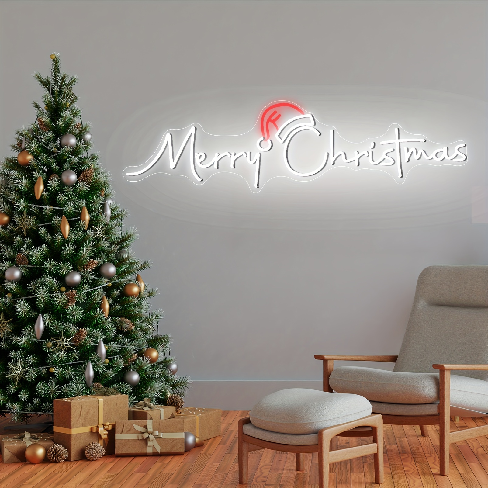 1 pc Merry Christmas Wall Neon Decoration, Dimmable LED Christmas Ambiance Wall Decoration Neon Sign, perfect for Christmas parties, bedrooms, birthday parties, pubs, shops, games rooms, clubs, rooms, friends party wall decorations, as a friend’s family birthday, Christmas gift preferred, USB powered light up sign hanging unit, 5V USB power supply