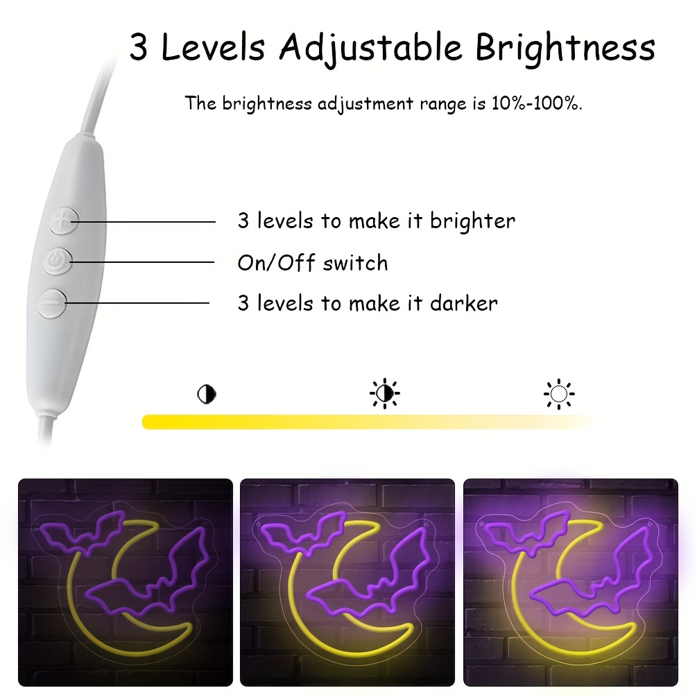 1 pc Moon and Bat Halloween Wall Neon Decoration, Dimmable LED Halloween Ambiance Wall Decoration Neon Sign, great for Halloween parties, bedrooms, birthday parties, pubs, shops, games rooms, clubs, rooms, friends party wall decorations, as a first choice for friends and family birthday and Halloween gifts, USB powered illuminated sign hanging unit, 5V USB power supply