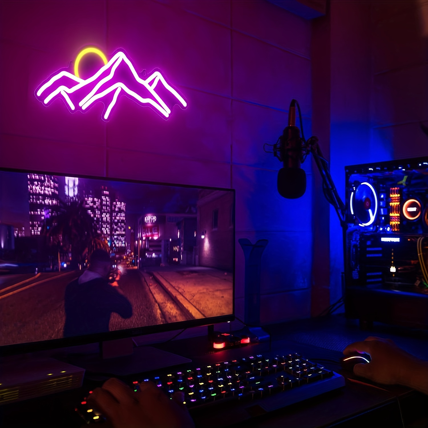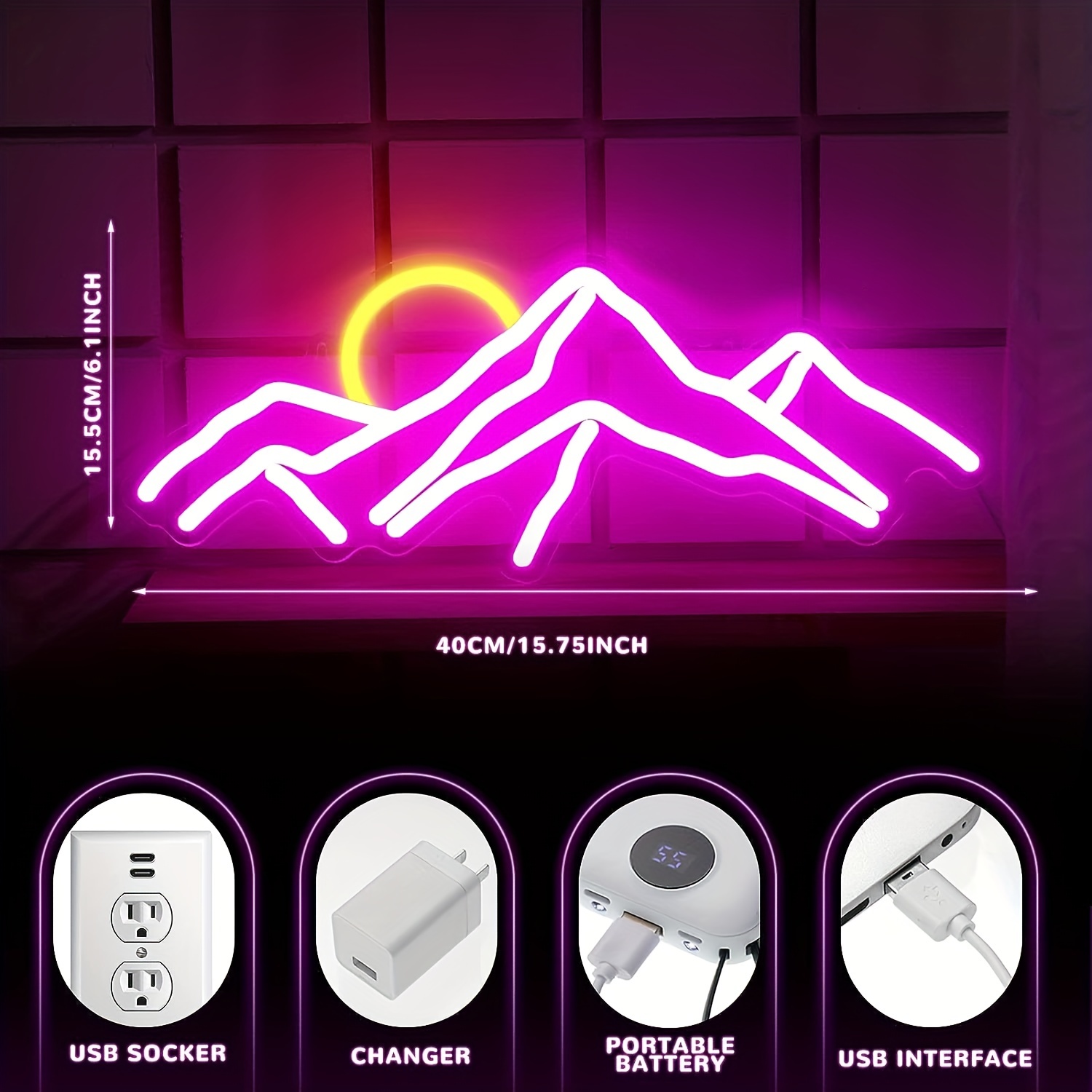 1 pc Mountains LED neon sign, ambient wall decoration neon sign for office, coffee shop, party, game room, family, club, living room, bar, bedroom and home wall decoration, preferred as friends and family birthday, holiday gift, USB powered light up sign hanging device, 5V USB power supply