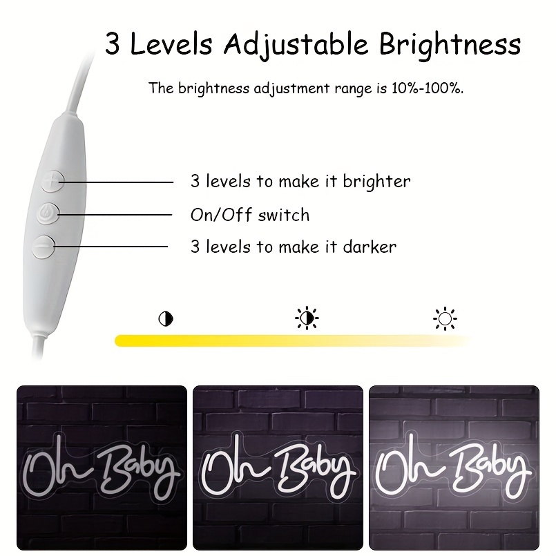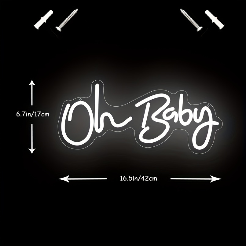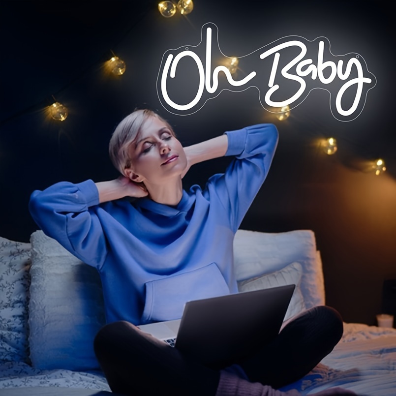 1 pc Oh Baby LED neon sign, ambient wall decor neon sign for home, party, living room, game room, office, as birthday, holiday gift, bedroom and home wall decor neon sign, 5V USB power supply