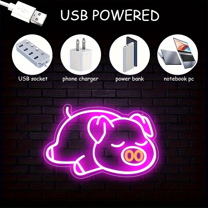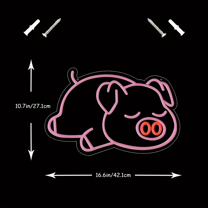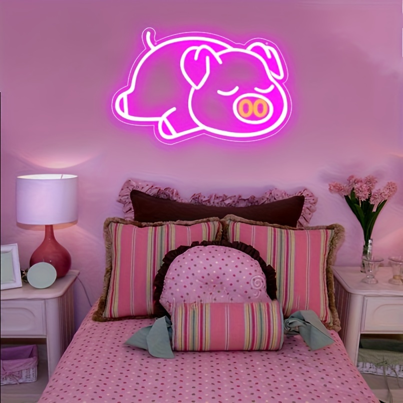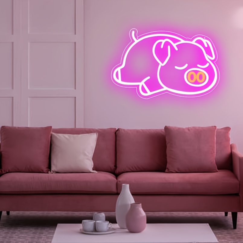 1 pc Pink Pig LED Neon Sign, Cute Sleeping Pig Ambience Wall Decoration Neon Sign for party, office, game room, home, club, living room, bar, bedroom and home wall decorations, as a friend’s family birthday, holiday gift first choice, USB powered light up sign hanging device, 5V USB power supply