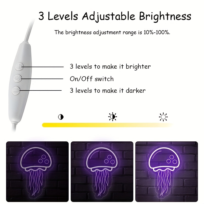 1 PC PURPLE JELLYFISH LED NEON SIGN, 3D ENGRAVING, AMBIENT WALL DECORATION NEON SIGN FOR BARS, OCEAN THEMED PARTIES, OFFICES, HOMES, CLUBS, LIVING ROOMS, BEDROOMS AND HOME WALL DECORATIONS, PREFERRED AS BIRTHDAY AND HOLIDAY GIFTS FOR FRIENDS AND FAMILY, USB POWERED ILLUMINATED SIGN HANGING UNIT, 5V USB POWER SUPPLY