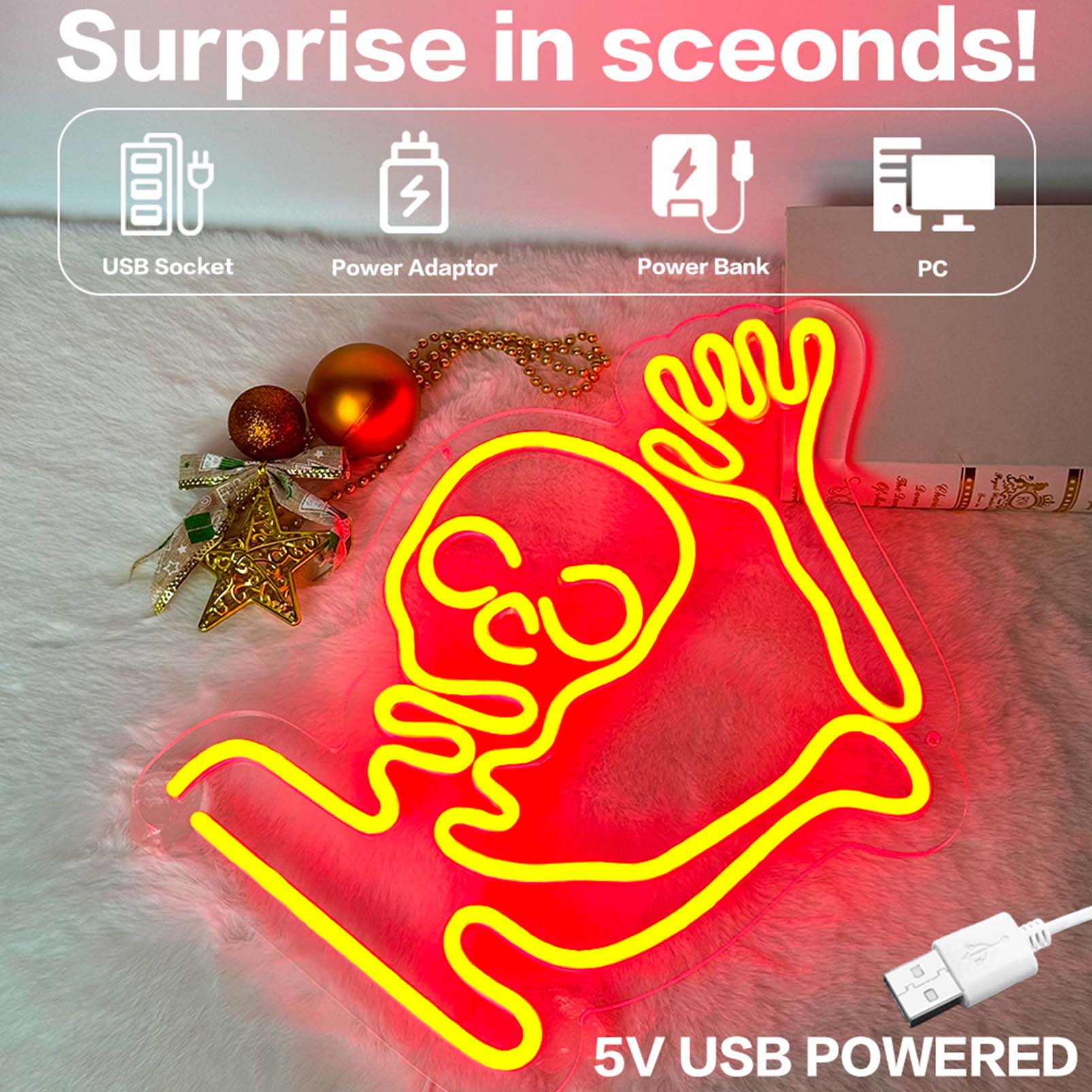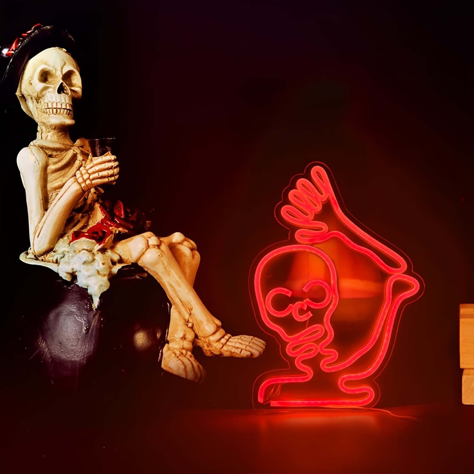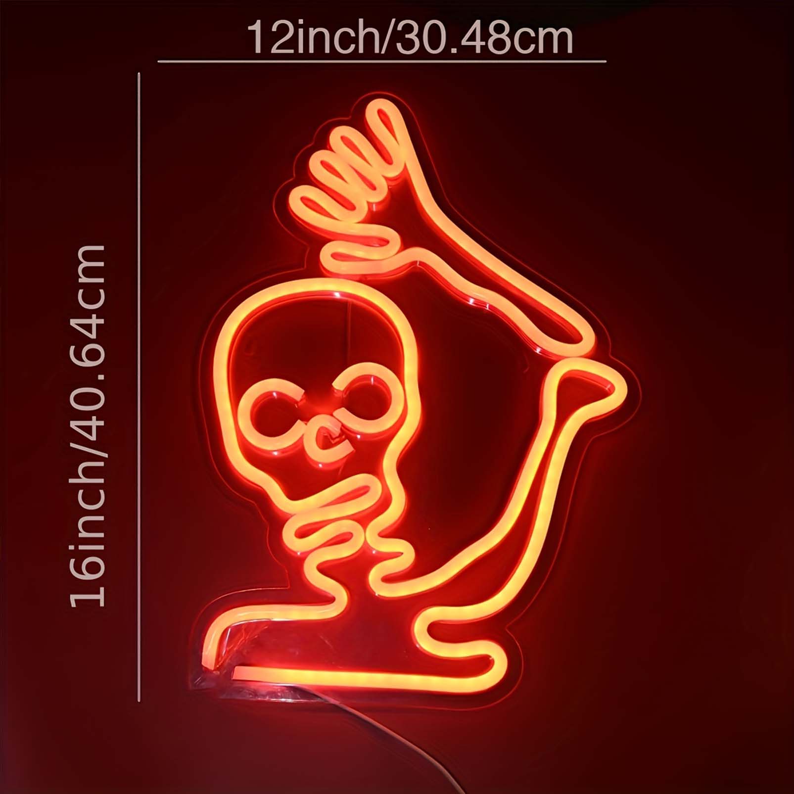 1 pc Red Skull Halloween Wall Neon Decoration, Dimmable LED Halloween Ambiance Wall Decoration Neon Sign, great for Halloween parties, bedrooms, birthday parties, pubs, shops, games rooms, clubs, rooms, friends party wall decorations, as a friend’s family birthday, Halloween gift preferred, USB powered light up sign hanging device, 5V USB power supply