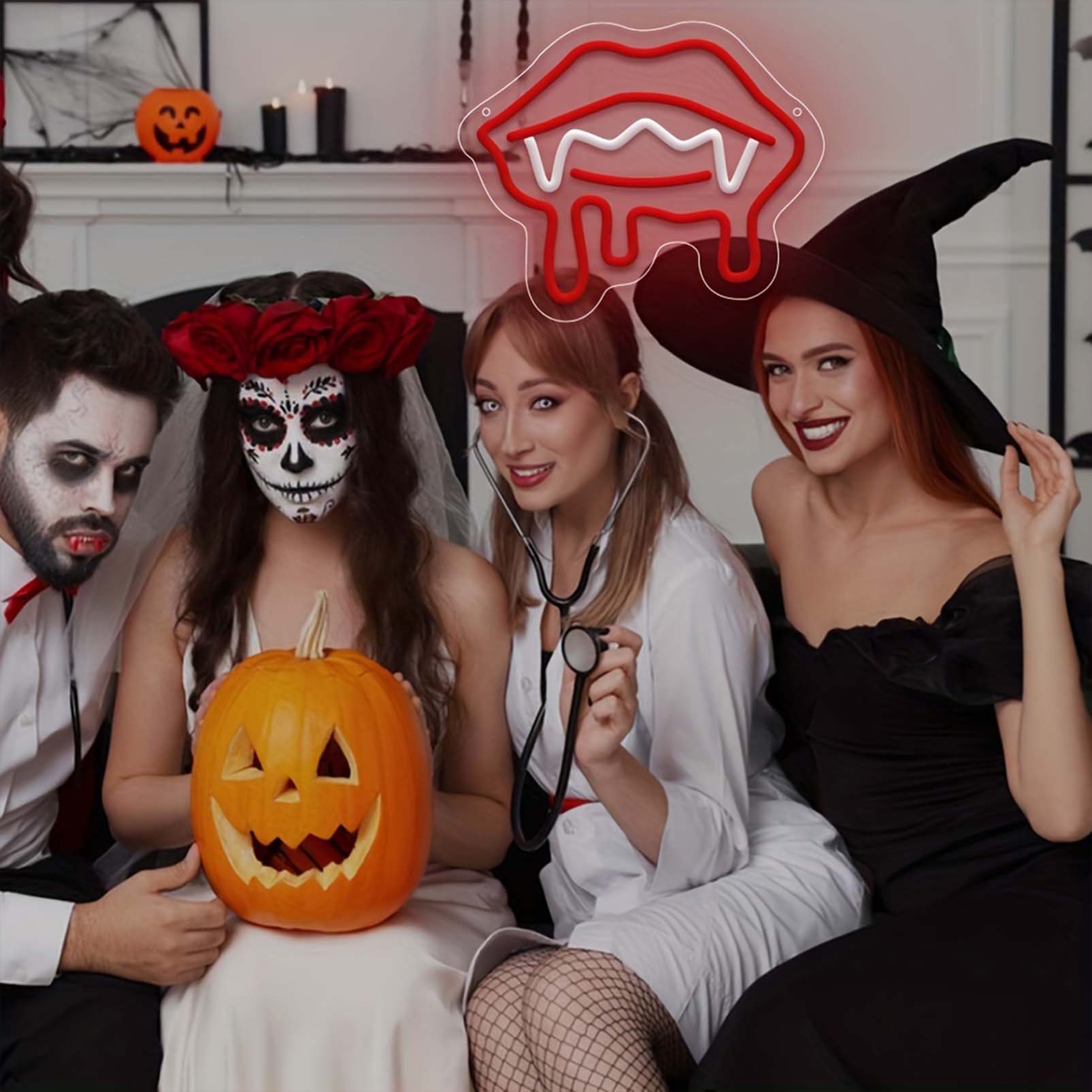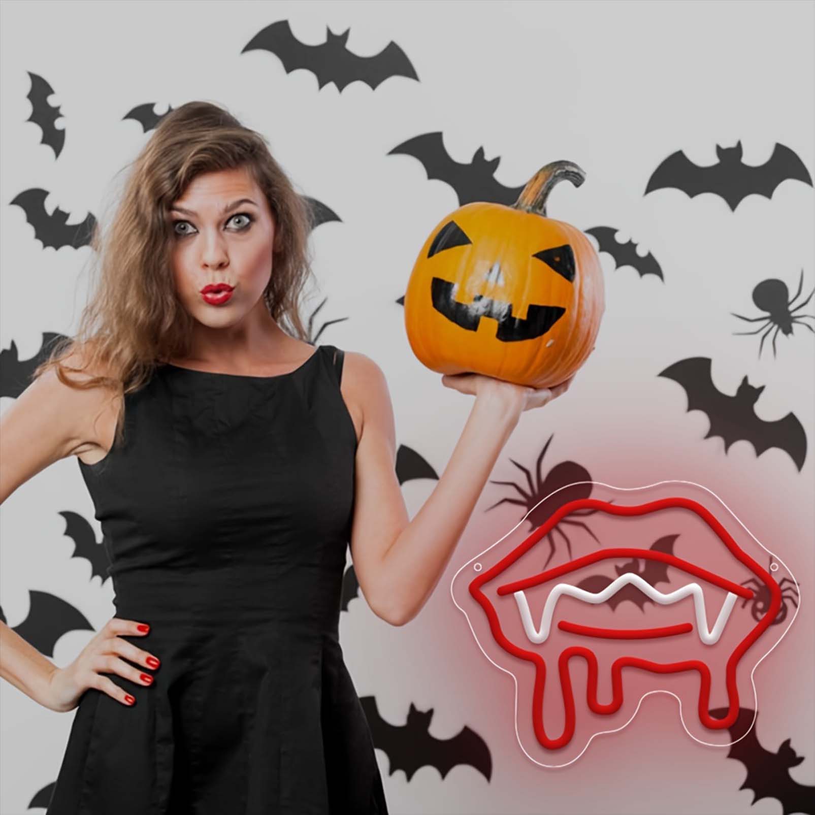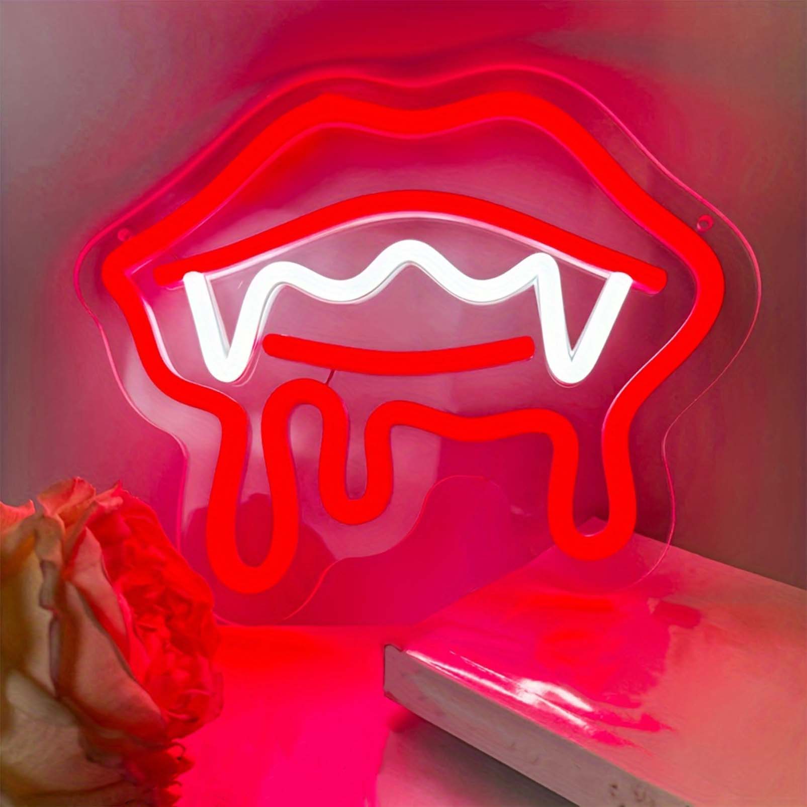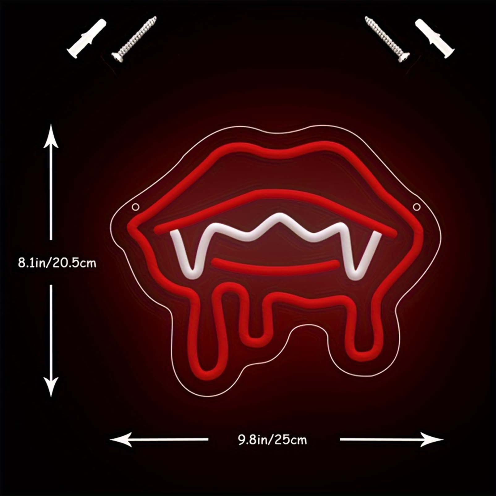 1 pc Red Vampire Lips Halloween Wall Neon Decoration, Dimmable LED Halloween Ambiance Wall Decoration Neon Sign, Perfect for Halloween Party, Bedroom, Birthday Party, Bar, Shop, Game Room, Club, Room, Friends Gathering Wall Decorations, Preferred for Friends’ Family’s Birthdays, Halloween Gifts, USB Powered Illuminated Sign Hanging Unit, 5V USB Power Supply