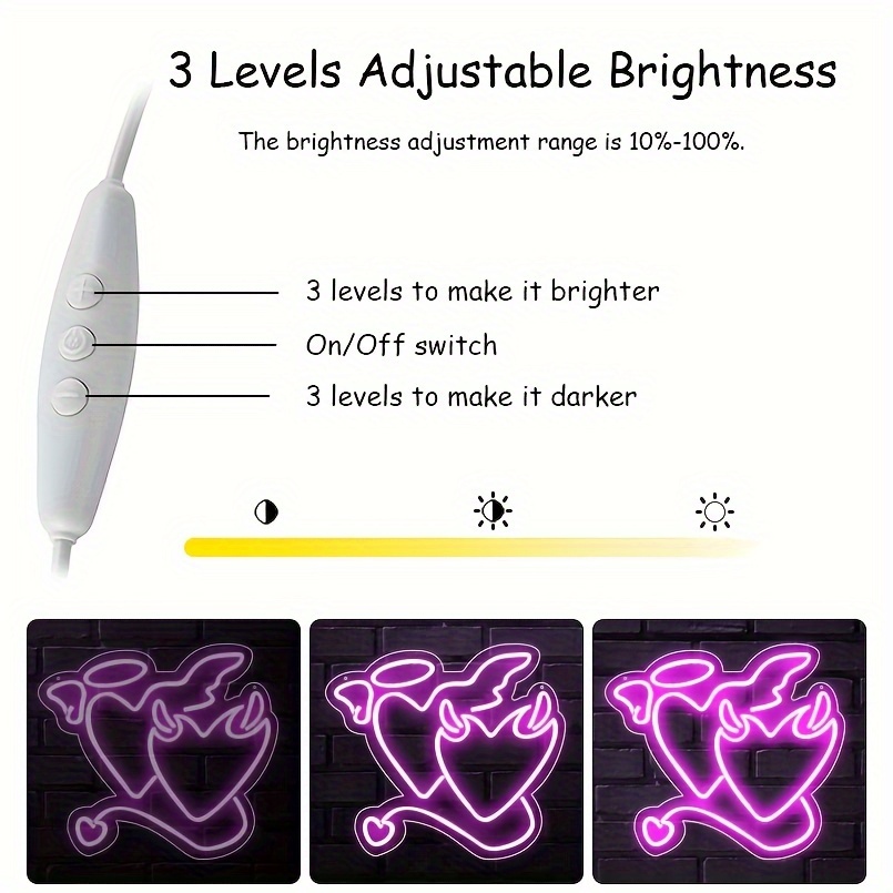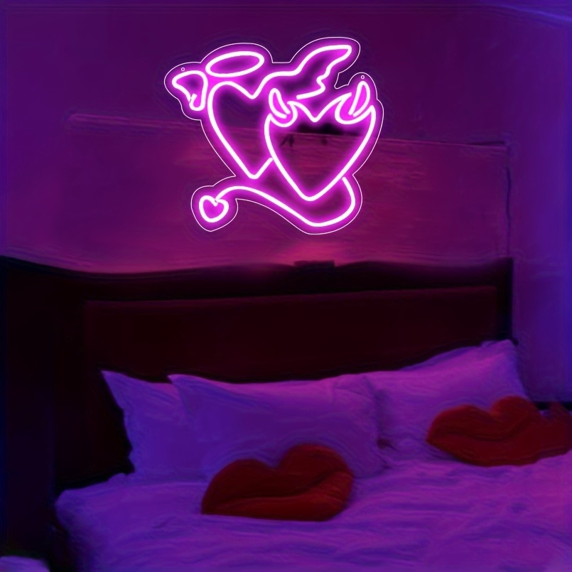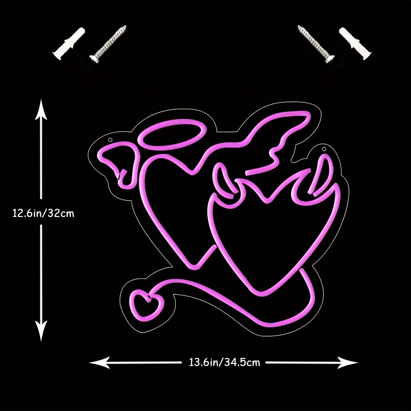 1 pc Rose Angel Demon LED Neon Sign, Space Ambiance Wall Decor Neon Sign for Home, Party, Living Room, Game Room, Club, as Birthday, Holiday Gift, Bedroom and Home Wall Decor Neon Sign, 5 V USB Power Supply