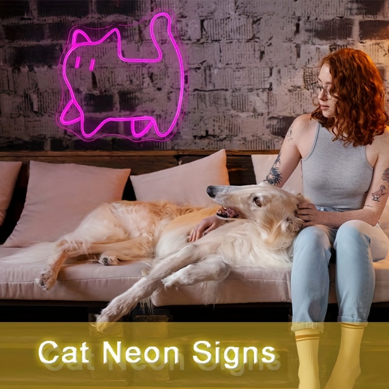 1 pc Rose Cat LED Neon Sign, Wall Decorative Neon Sign for Home, Pet Shop, Party, Living Room, Game Room, Children’s Living Room, Birthday Christmas Gift, Bedroom and Home Wall Decorative Neon Sign, 5 V USB Power Supply