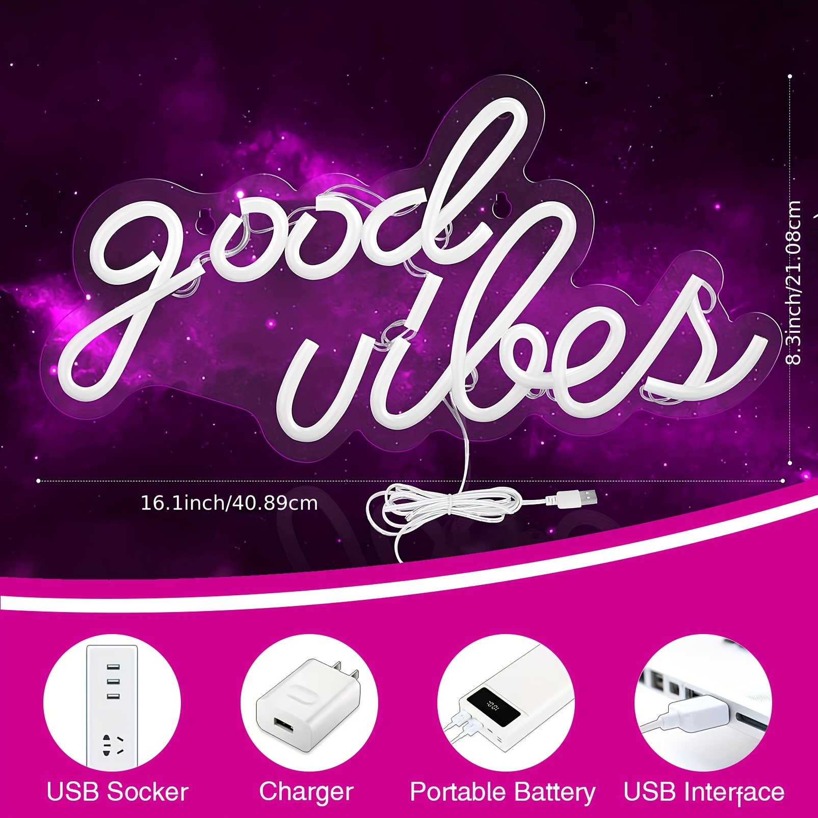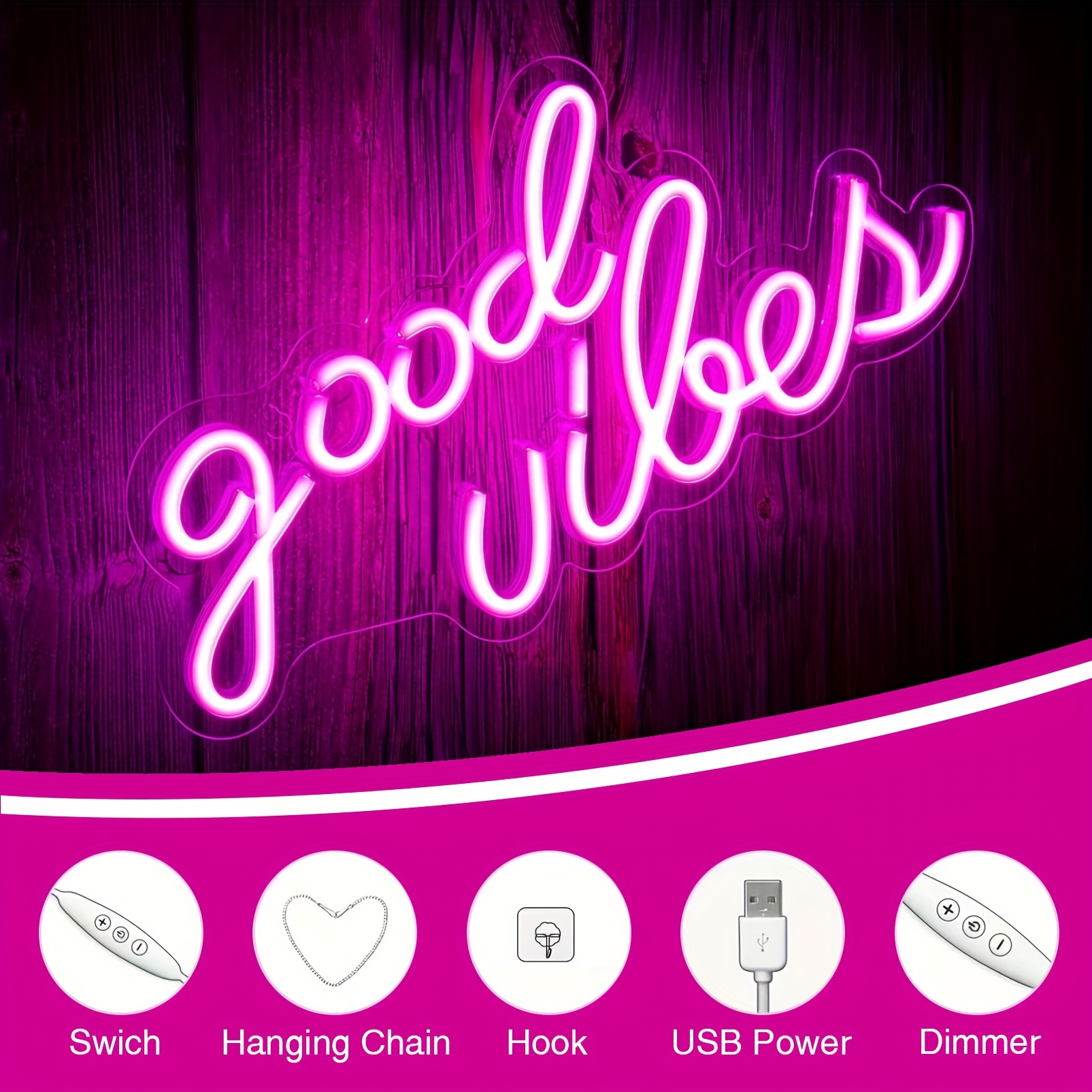 1 pc Rose Good Vibes LED Neon Sign, Space Ambiance Wall Decor Neon Sign for Home, Party, Living Room, Bar, Game Room, Club, as Birthday, Holiday Gift, Bedroom and Home Wall Decor Neon Sign, 5 V USB Power Supply