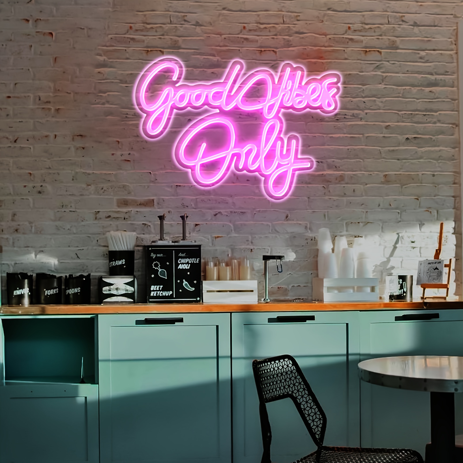 1 pc Rose Good Vibes Only LED Neon Sign, Atmosphere Wall Decor Neon Sign, Suitable for Parties, Offices, Gyms, Game Rooms, Homes, Clubs, Living Rooms, Bars, Bedrooms, and Home Wall Decor. The Perfect Gift Choice for Friends’ and Family’s Birthdays and Holidays. USB-Powered Illuminated Sign Hanging Kit, 5V USB Power Supply.
