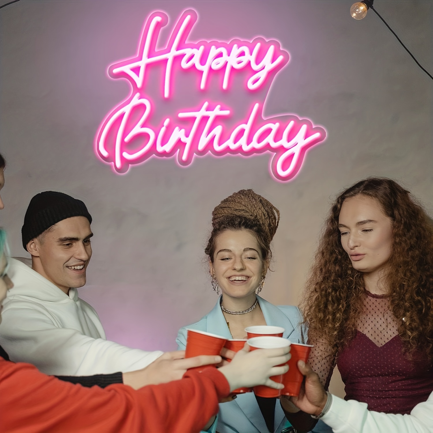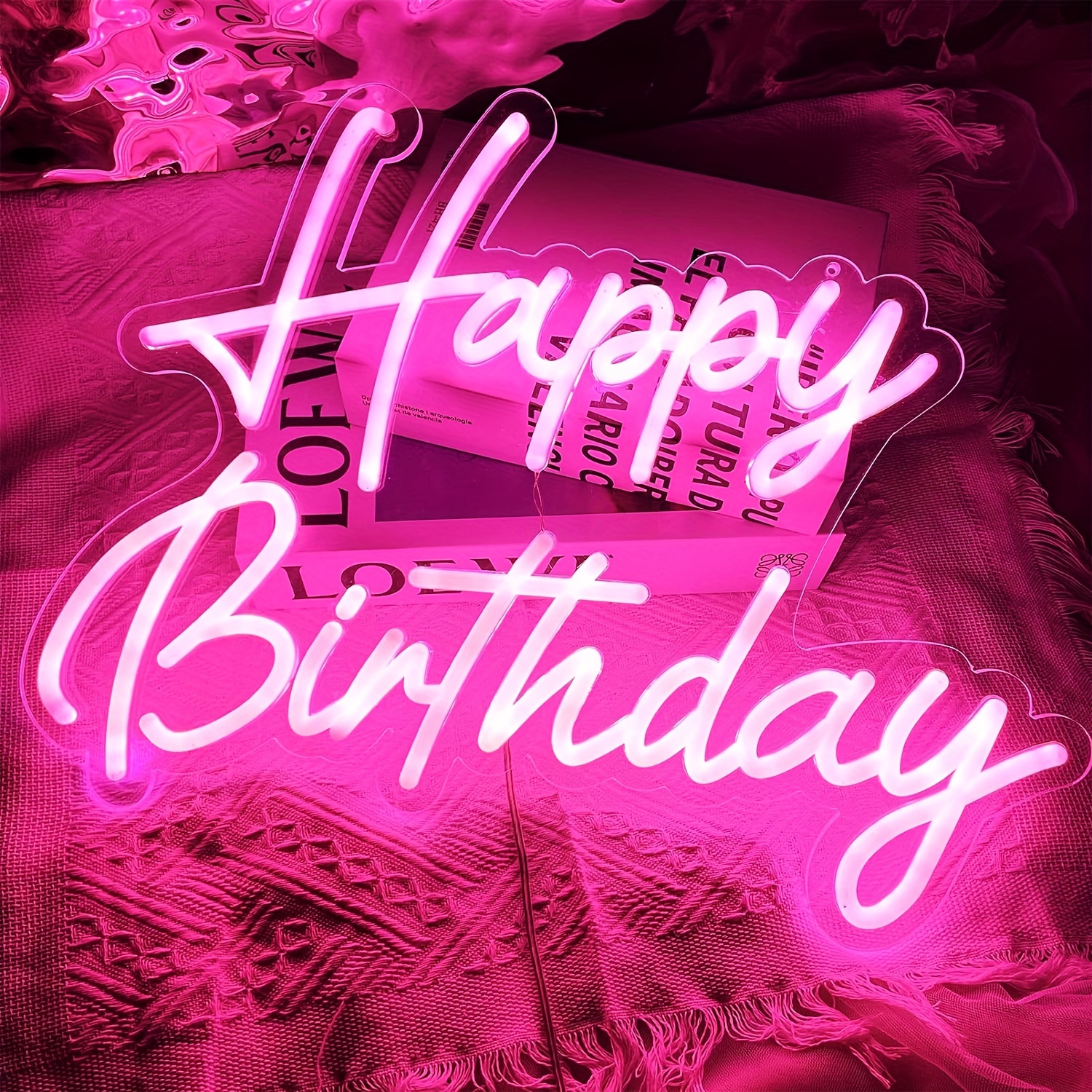 1 pc Rose Happy Birthday LED Neon Sign, Atmosphere Wall Decor Neon Sign, Suitable for Birthday Parties, Offices, Game Rooms, Homes, Clubs, Living Rooms, Bars, Bedrooms, and Home Wall Decor. The Perfect Gift Choice for Friends’ and Family’s Birthdays and Holidays. USB-Powered Illuminated Sign Hanging Kit, 5V USB Power Supply.
