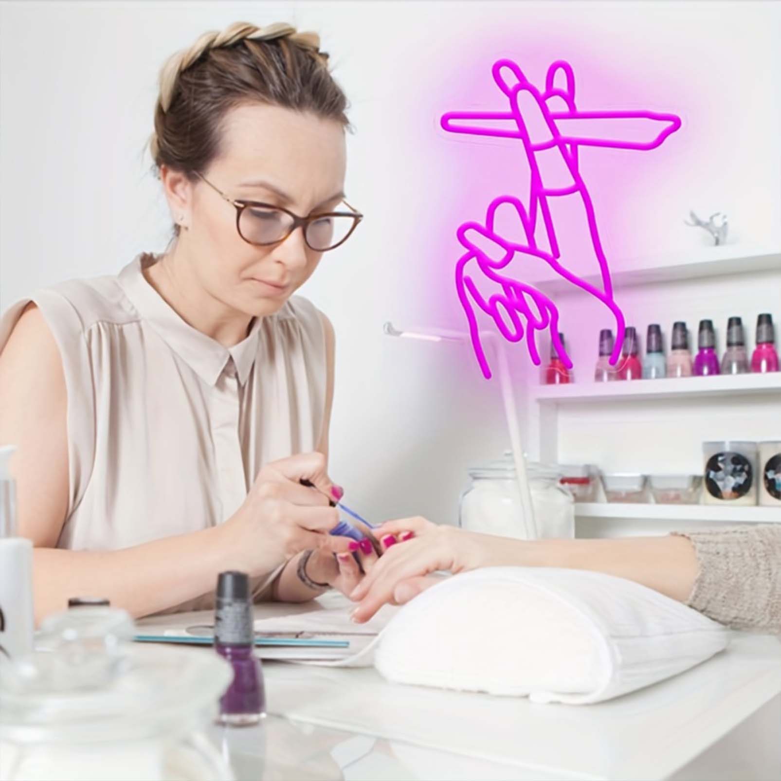 1 pc Rose Nails LED Neon Sign, Ambient Wall Decoration Neon Sign for Nail Salon, Party, Hairdresser, Home, Club, Living Room, Bar, Bedroom and Home Wall Decoration, Preferred as Birthday and Holiday Gift for Friends and Family, USB Powered Illuminated Sign Hanging Device, 5V USB Power Supply