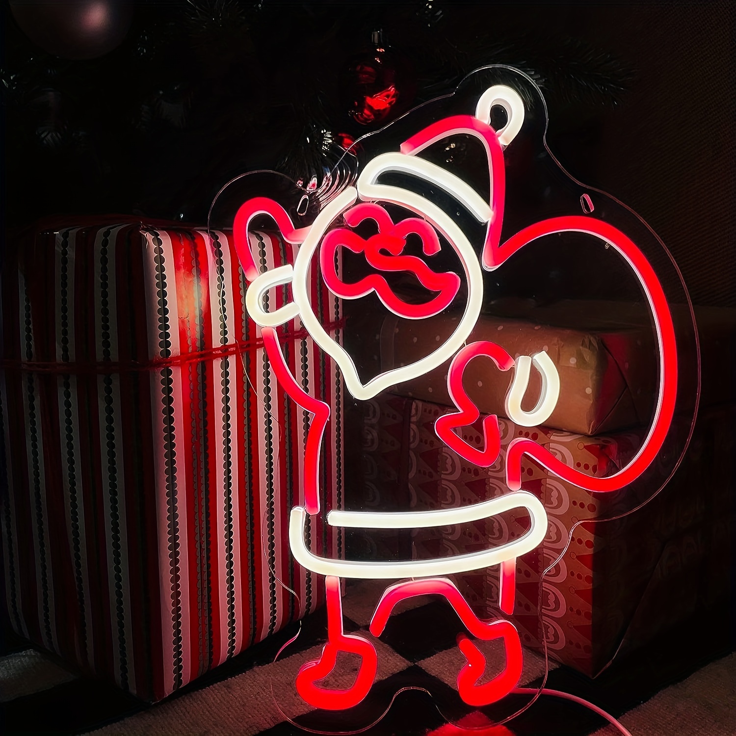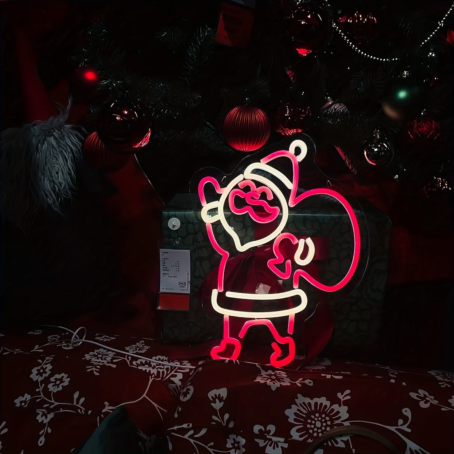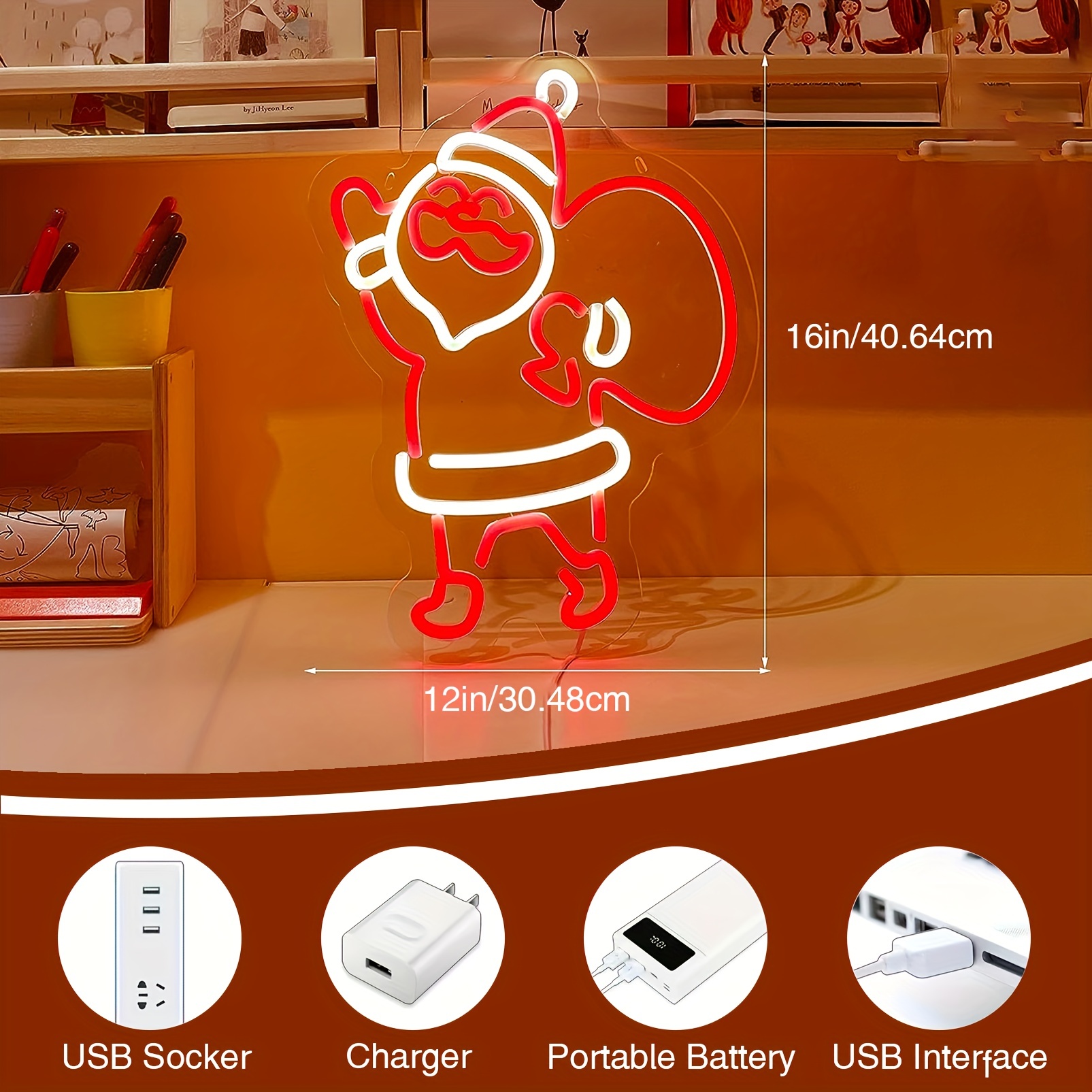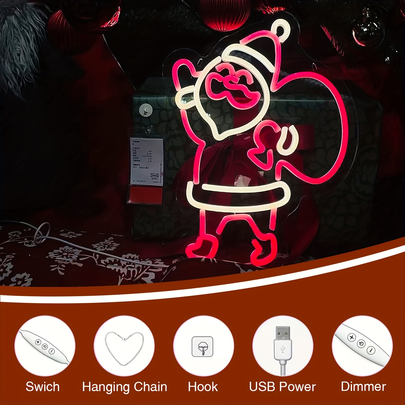1 pc Santa Claus Wall Neon Sign Decoration, Dimmable LED Christmas Atmosphere Wall Decor Neon Sign, Perfect for Christmas Parties, Bedrooms, Birthday Parties, Bars, Shops, Game Rooms, Clubs, Rooms, Friends Gatherings Wall Decor, Top Choice as a Gift for Friends’ Birthdays or Christmas, USB-powered illuminated sign hanging kit, 5V USB power supply