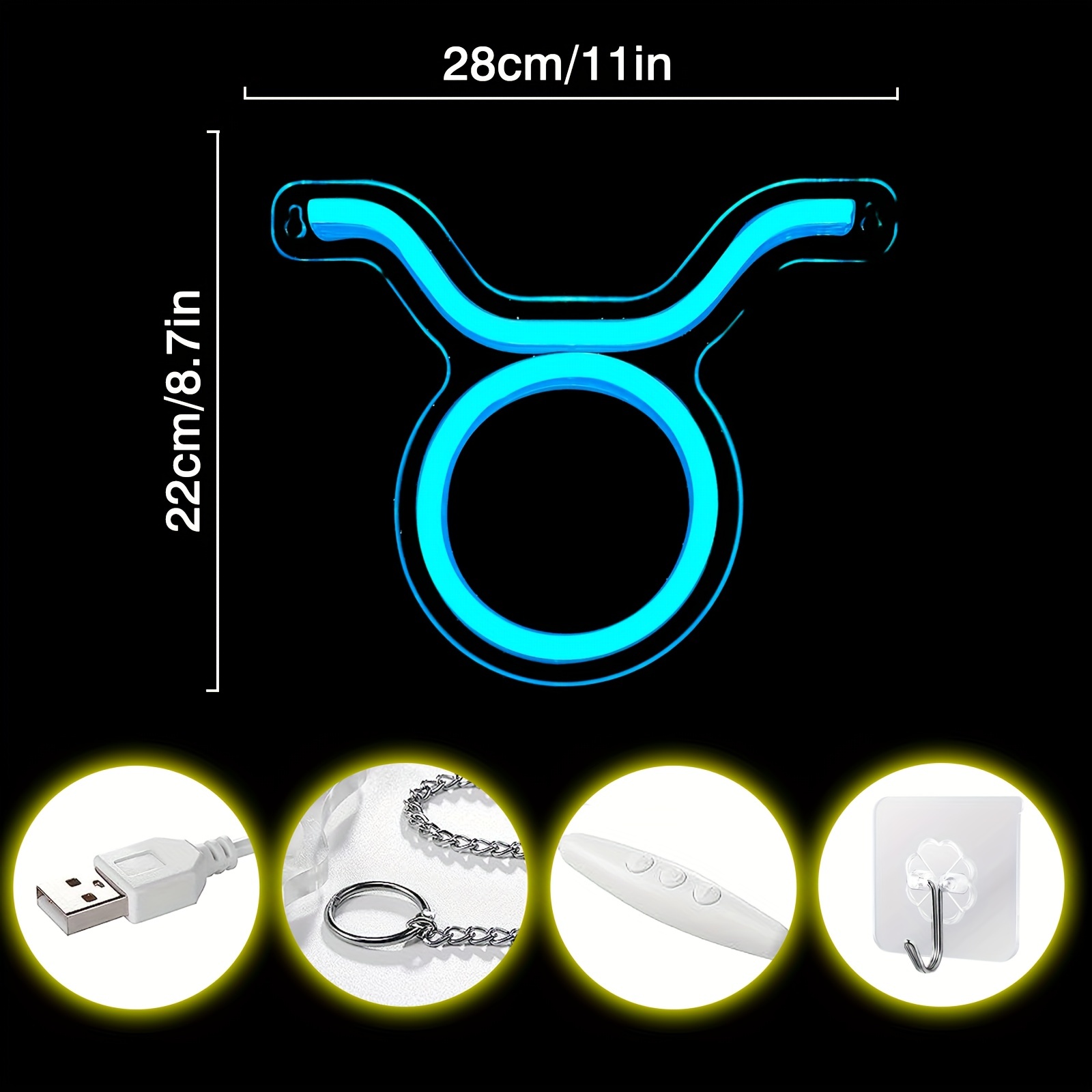 1 pc The Taurus LED Neon Sign, Astrology Horoscope Ambiance Wall Decoration Neon Sign for Home, Party, Living Room, Bar, Club, Game Room, as Birthday, Holiday Gift, Bedroom and Home Wall Decoration, USB Powered Illuminated Sign Hanging Unit, 5V USB Power Supply