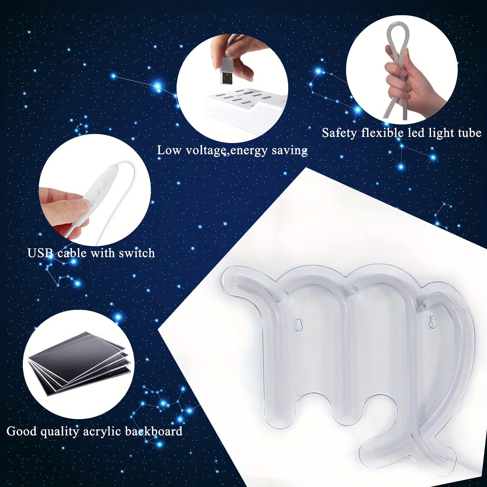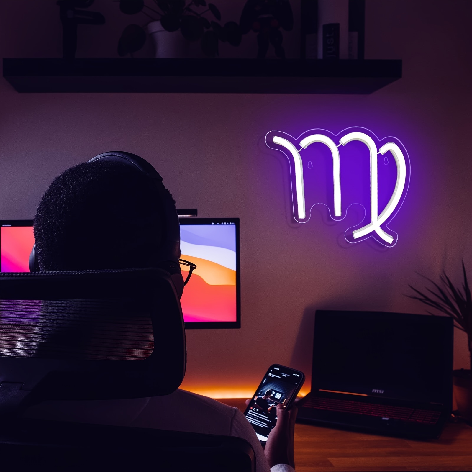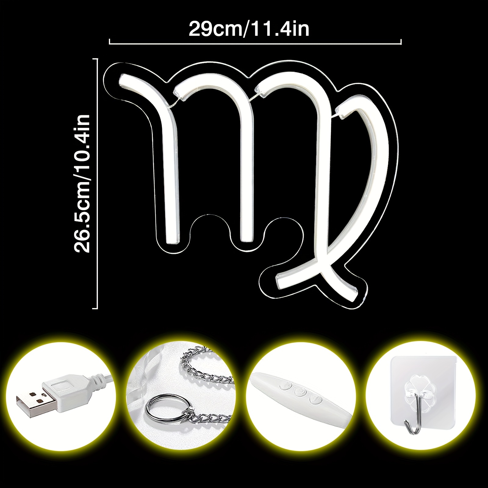 1 pc The Virgo LED Neon Sign, Astrology Horoscope Ambiance Wall Decoration Neon Sign for Home, Party, Living Room, Bar, Club, Game Room, as Birthday, Holiday Gift, Bedroom and Home Wall Decoration, USB Powered Illuminated Sign Hanging Unit, 5V USB Power Supply