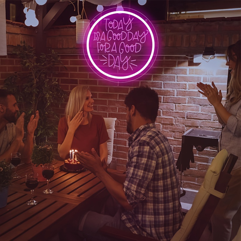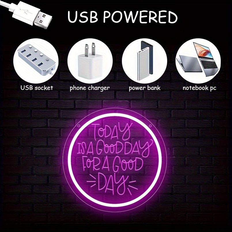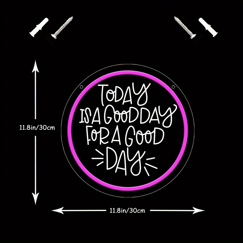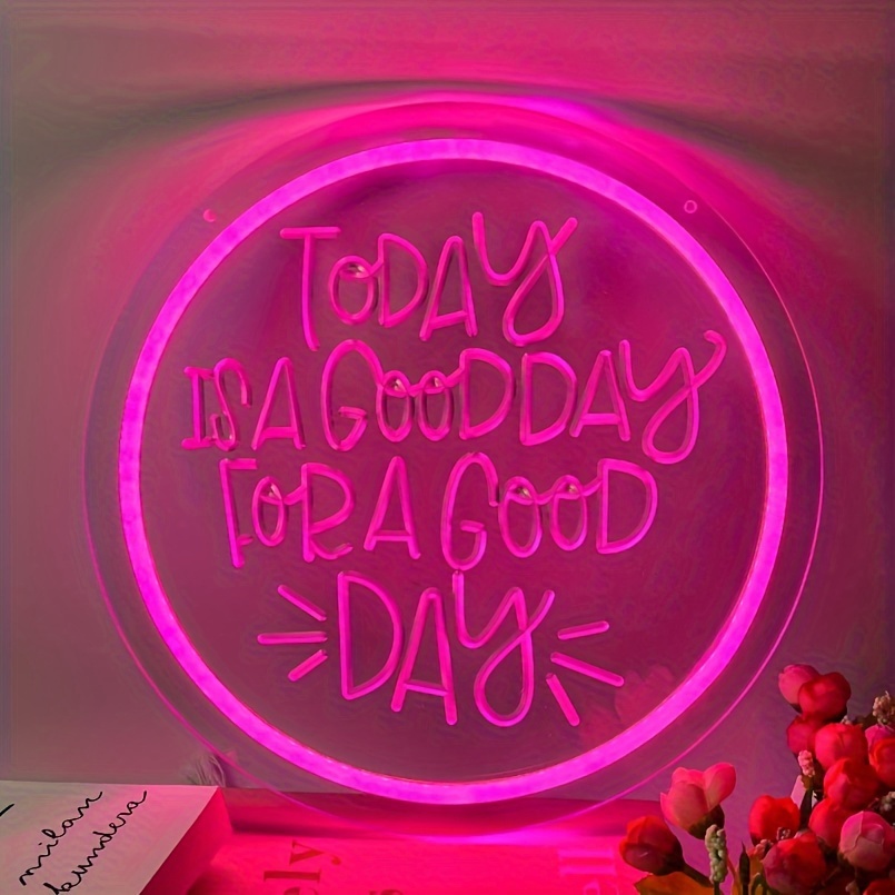 1 pc Today Is A Good Day For A Good Day LED Neon Sign, 3D Engraving, Ambient Wall Decoration Neon Sign for Hair Salon, Party, Office, Game Room, Family, Club, Living Room, Bar, Bedroom and Home Wall Decoration, Preferred as Birthday and Holiday Gift for Friends and Family, USB Powered Illuminated Sign Hanging Device, 5V USB Power Supply