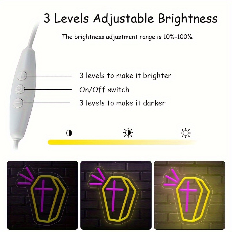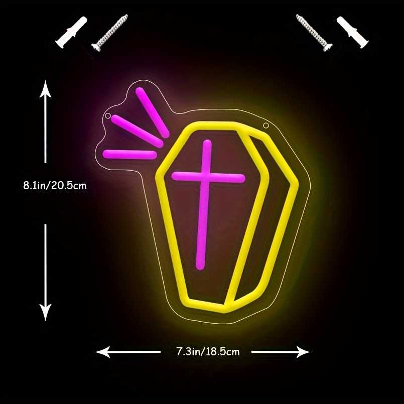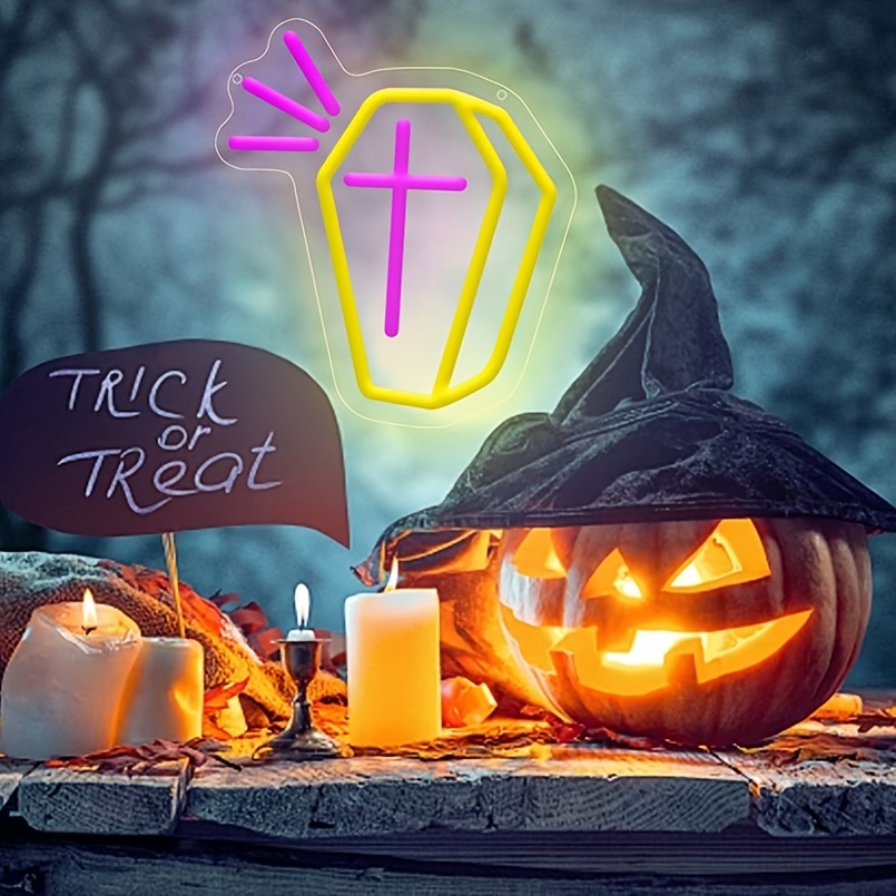 1 pc Tombstone Halloween Wall Neon Decoration, Dimmable LED Halloween Ambiance Wall Decoration Neon Sign, great for Halloween parties, bedrooms, birthday parties, pubs, shops, rooms, friends party wall decorations, as a friend’s family birthday, Halloween gift preferred, USB powered light up sign hanging unit, 5V USB power supply