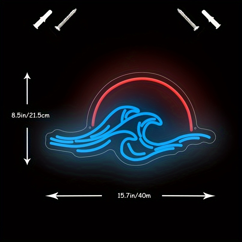 1 pc Tropical Ocean Wave LED Neon Sign, Ambient Wall Decor Neon Sign for Game Rooms, Homes, Parties, Living Rooms, Offices, Bars, Clubs, as Birthday, Holiday Gifts, Bedroom and Home Wall Decor Neon Sign, 5 V USB Power Supply
