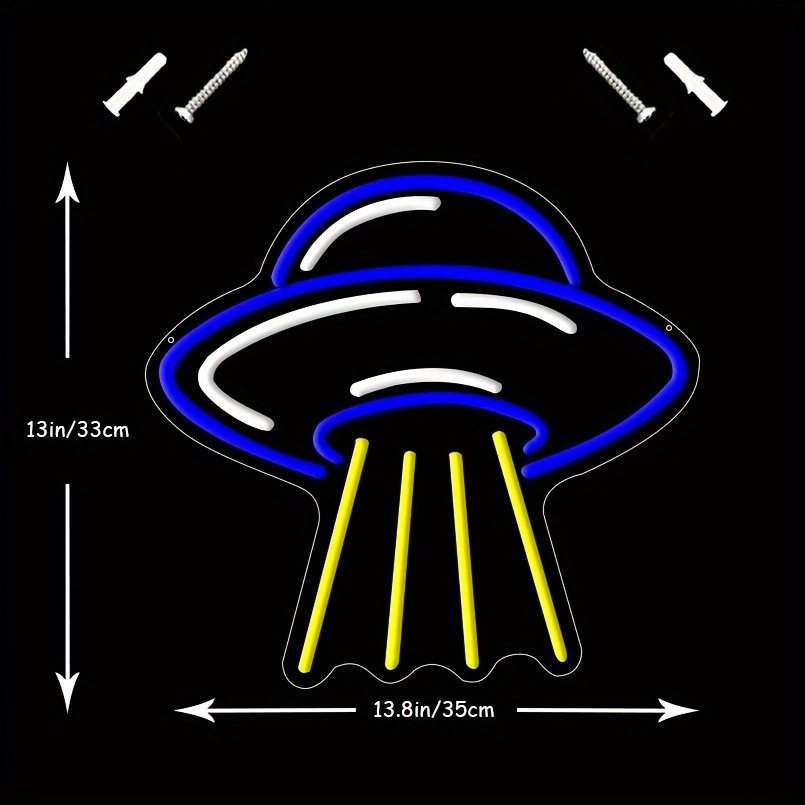 1 pc UFO Alien Spaceship LED Neon Sign, Science Museum Ambiance Wall Decor Neon Sign for Home, Party, Living Room, Bar, Club, Game Room, as Birthday, Astronomy Enthusiast Gift, Bedroom and Home Wall Decor, USB Powered Illuminated Sign Hanging Unit, 5V USB Power Supply