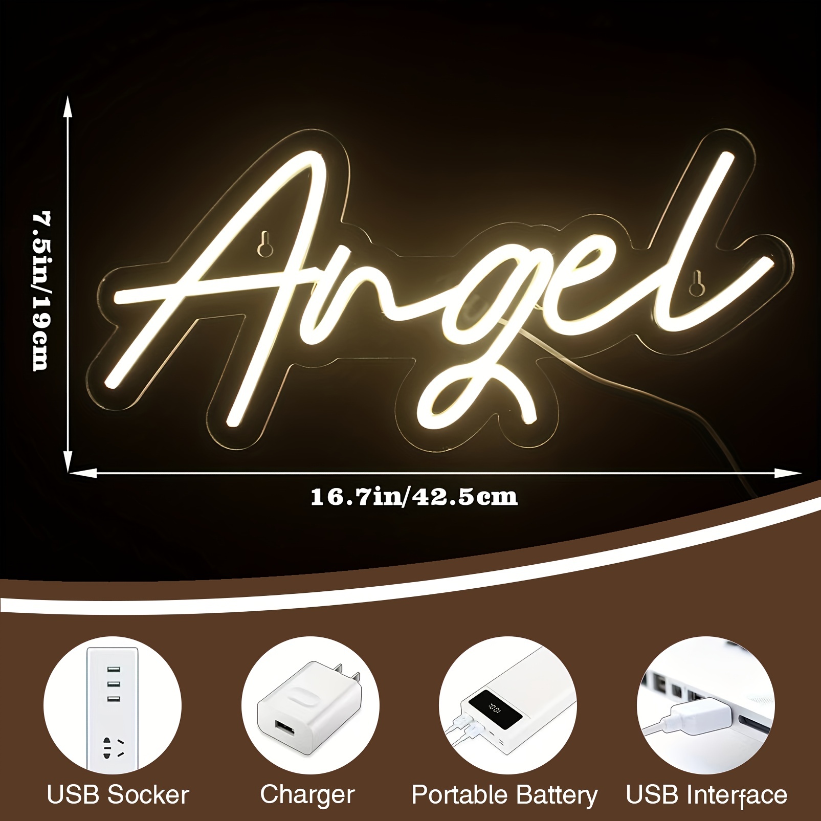 1 pc Warm White Angel LED neon sign, ambient wall decor neon sign for home, party, living room, office, bar, club, as a birthday, holiday gift, bedroom and home wall decor neon sign, 5 V USB power supply