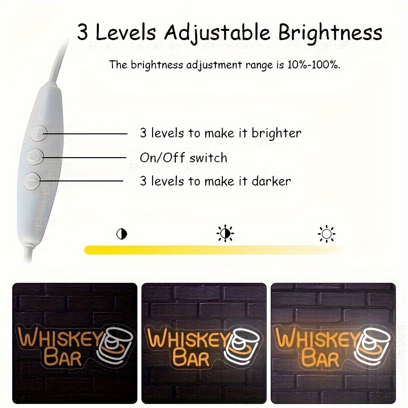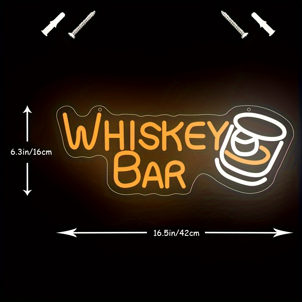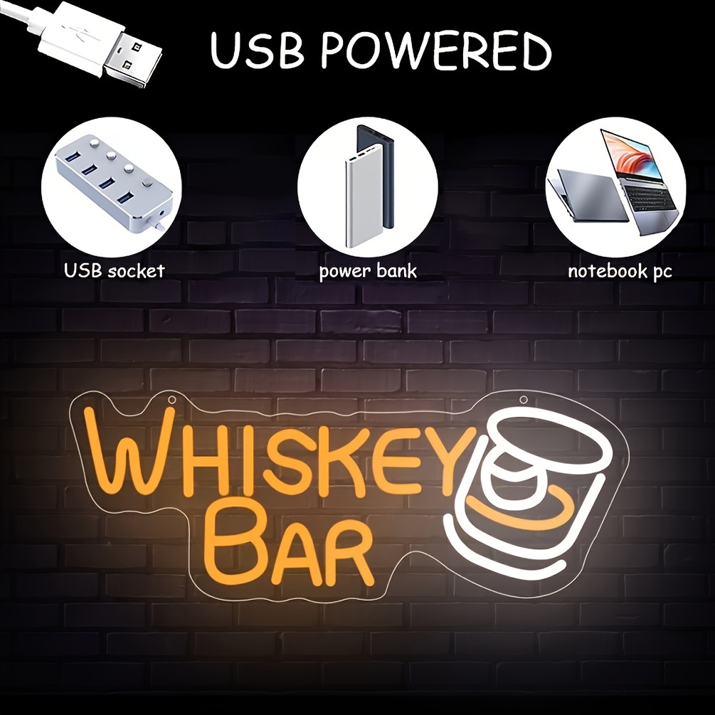 1 pc Whiskey Bar LED Neon Sign, Wall Decoration Neon Sign for Bars, Parties, Home, Living Room, Game Room, Gifts for Friends, Bedroom and Home Wall Decoration, 5 V USB Power Supply
