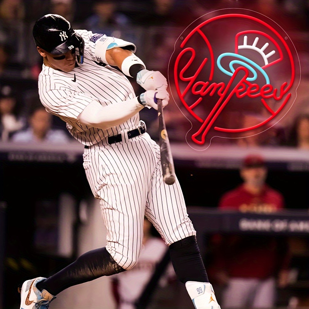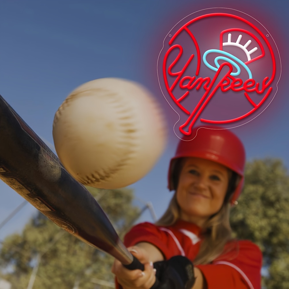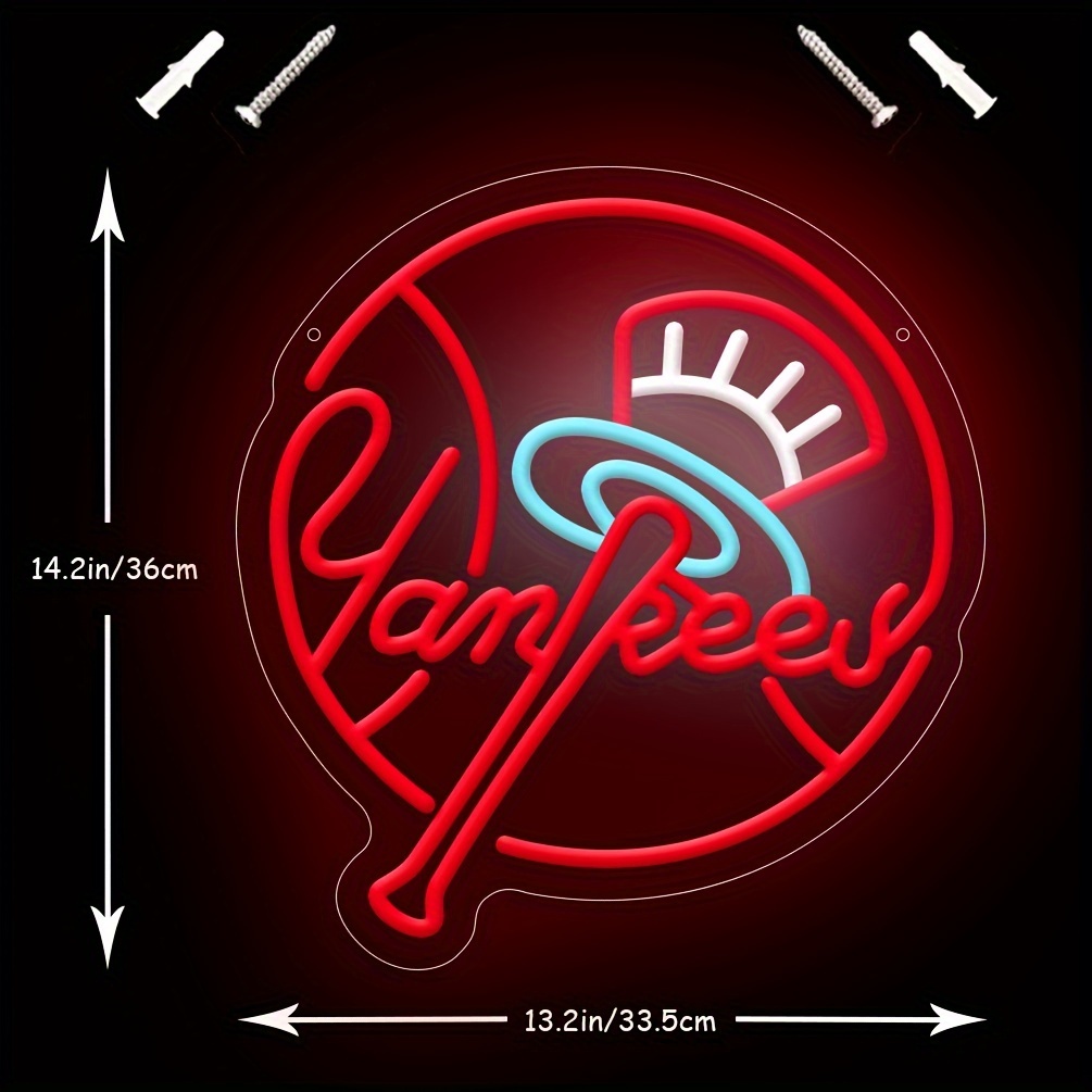 1 pc Yankees Baseball Team Neon Sign Sign Light, Dimmable Wall Decor Switch LED Neon Signage, Great for Man Cave Decorations, Bedrooms, Recreation Rooms, Living Rooms, Wall Decorations for Friends’ Gatherings, Christmas Gift, 5V USB Power Supply