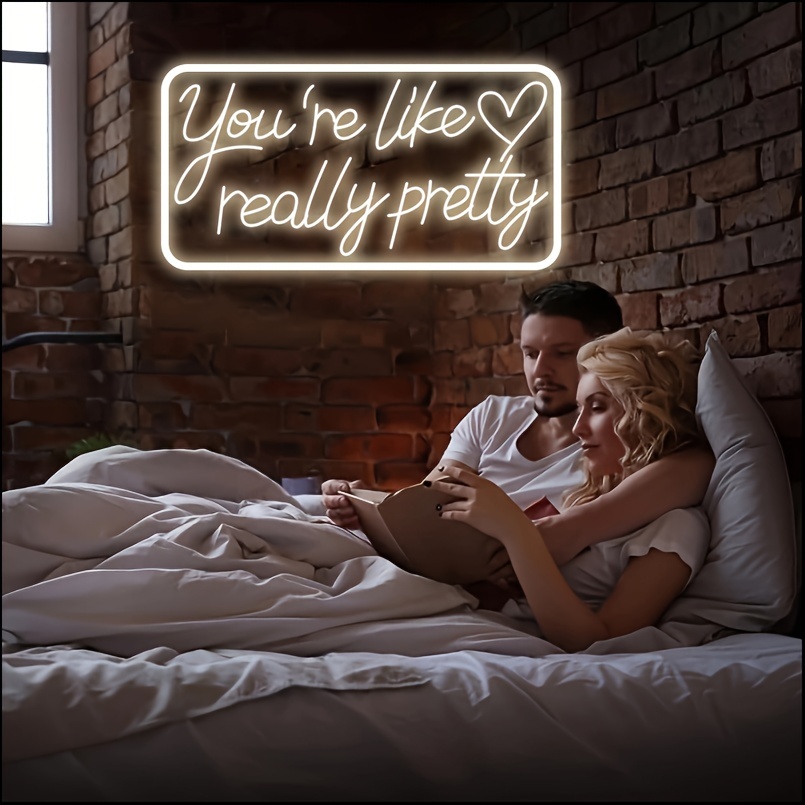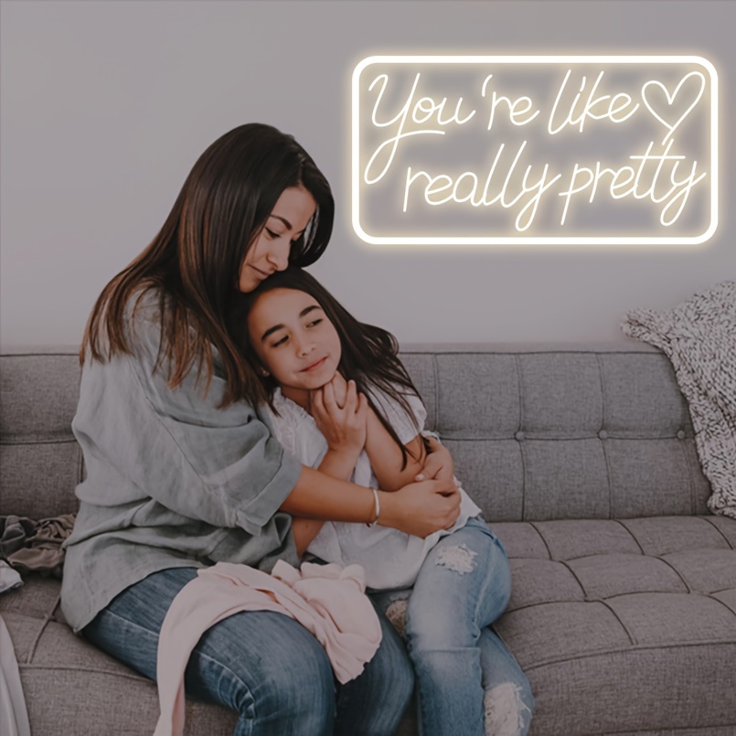 1 pc You’re Like Really Pretty LED Neon Sign, 3D Engraving, Ambient Wall Decoration Neon Sign for Weddings, Engagement Parties, Shops, Bars, Offices, Families, Clubs, Living Rooms, Bedrooms and Home Wall Decorations, Preferred as Birthday and Holiday Gifts for Friends’ Families, USB Powered Illuminated Sign Hanging Unit, 5V USB Power Supply