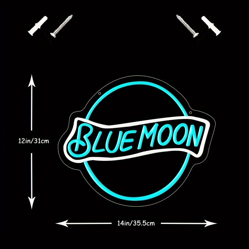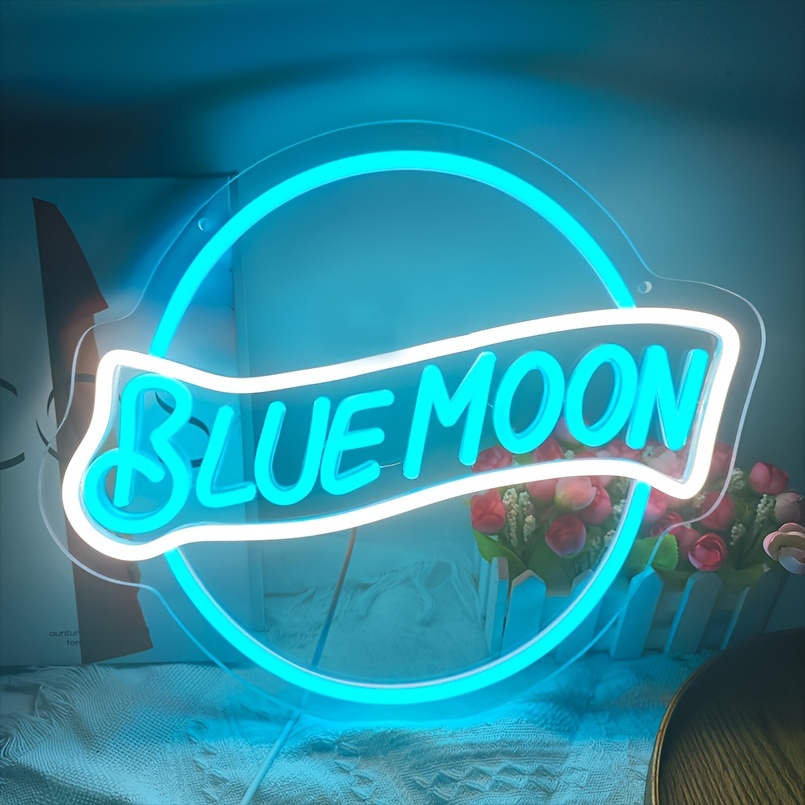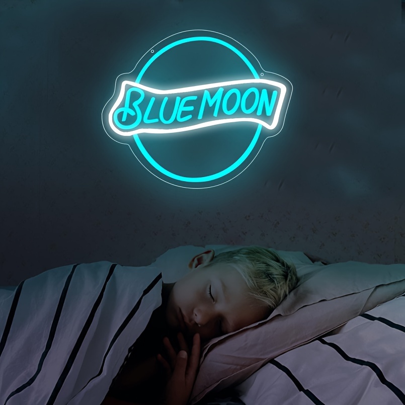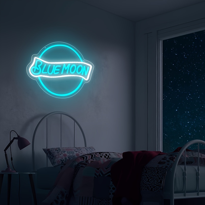 1 pcBlue Moon LED neon sign, ambient wall decoration neon sign for party, office, game room, home, club, living room, bar, bedroom and home wall decorations, as a friend’s family birthday, holiday gift preferred, USB powered light up sign hanging device, 5V USB power supply