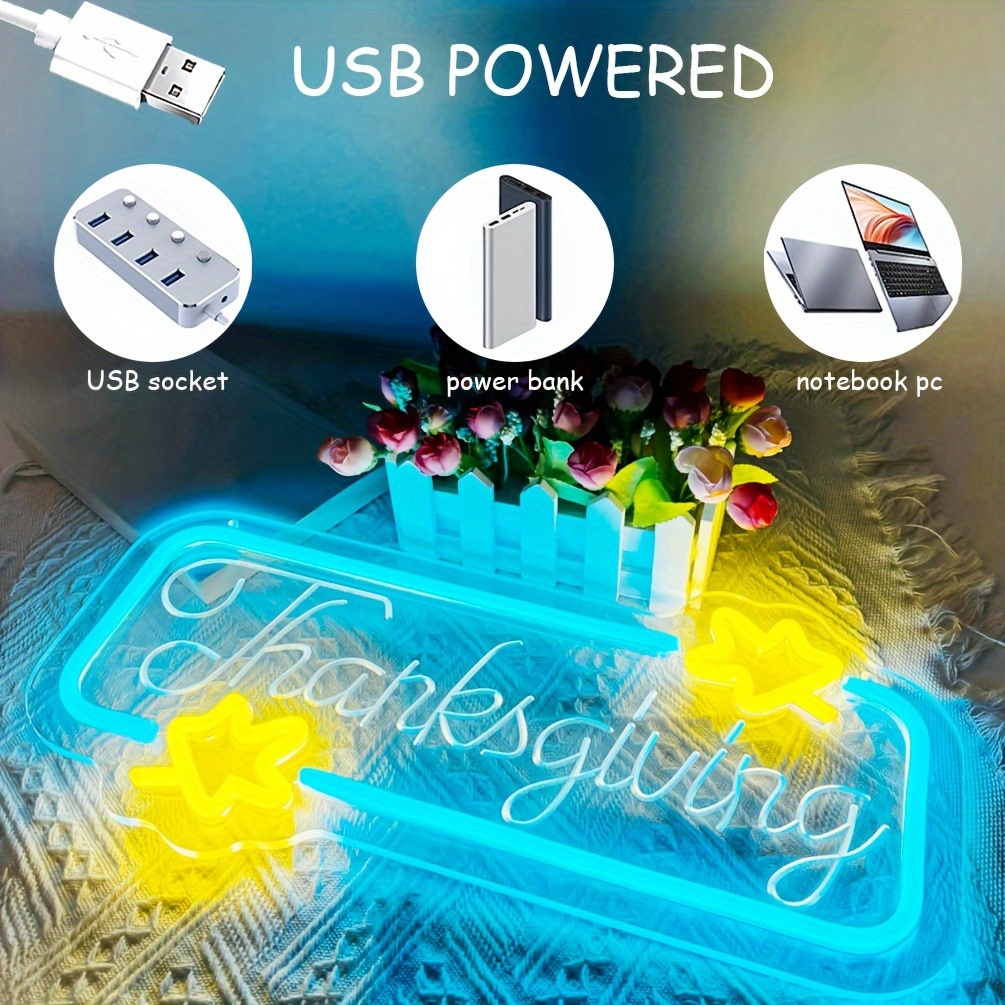 1pc Thanksgiving LED Neon Lights, Wall Window Art Decoration Holiday Celebration, Wall Decoration Neon Sign, Great for Home Parties, Autumn Harvest Celebrations, Bedrooms, Hotels, Cafes, Recreation Rooms, Shops, Living Room, 5V USB Power Supply