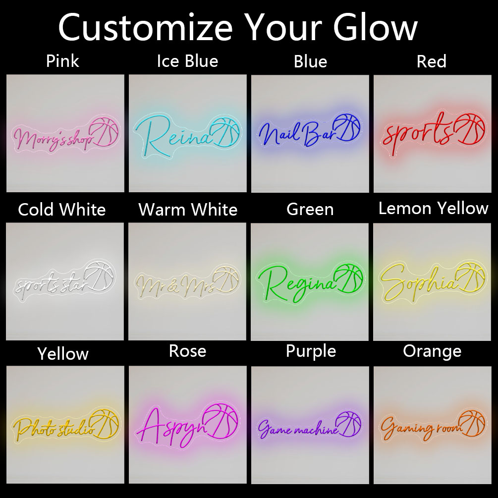 Custom Basketball and Name Neon Lights, Personalised LED Neon Lights for Basketball Arena, Parties, Events, Children’s Rooms, Bedrooms, Living Rooms and Home Decoration, unique and ideal gifts for birthdays, parties, graduations, children’s day, housewarming and more!
