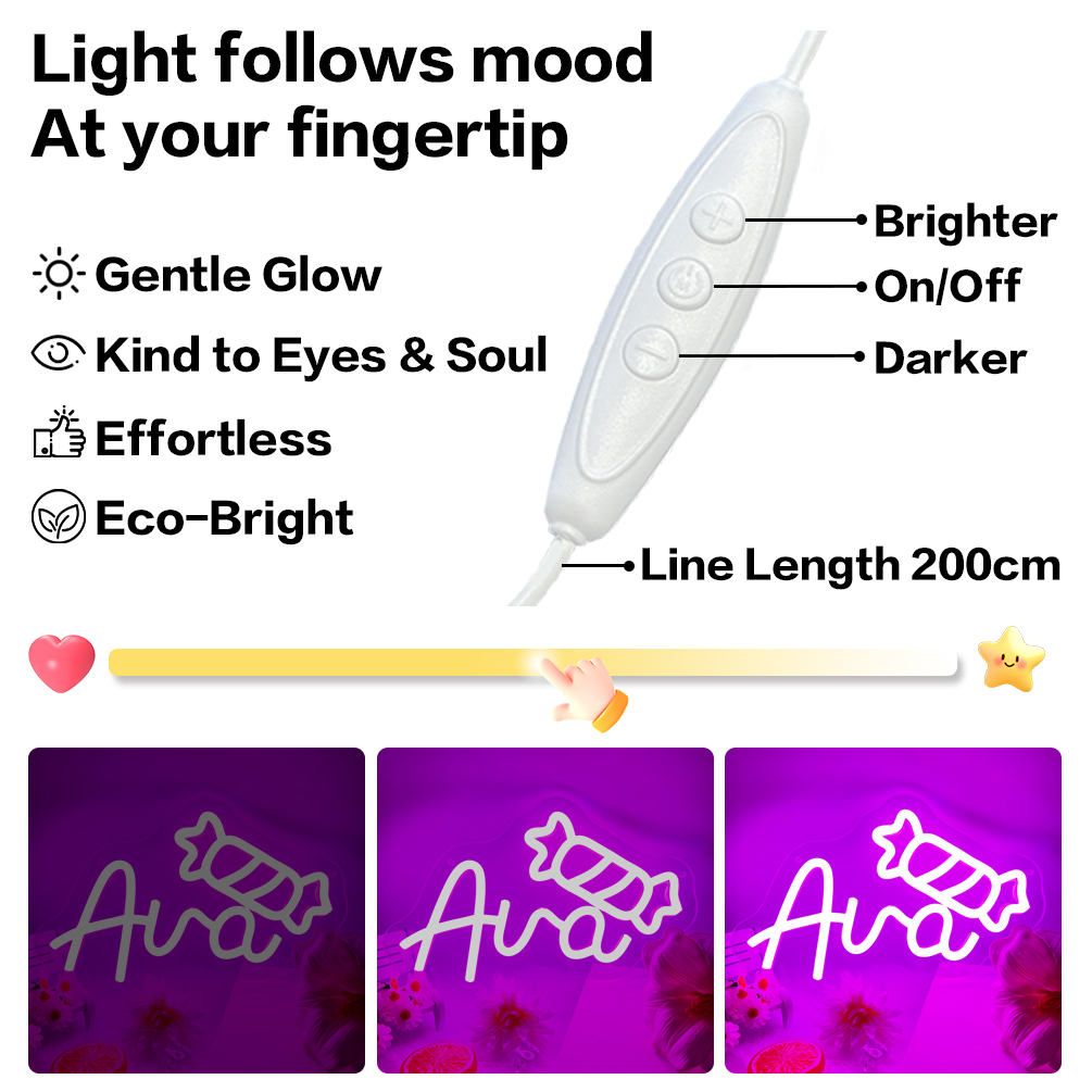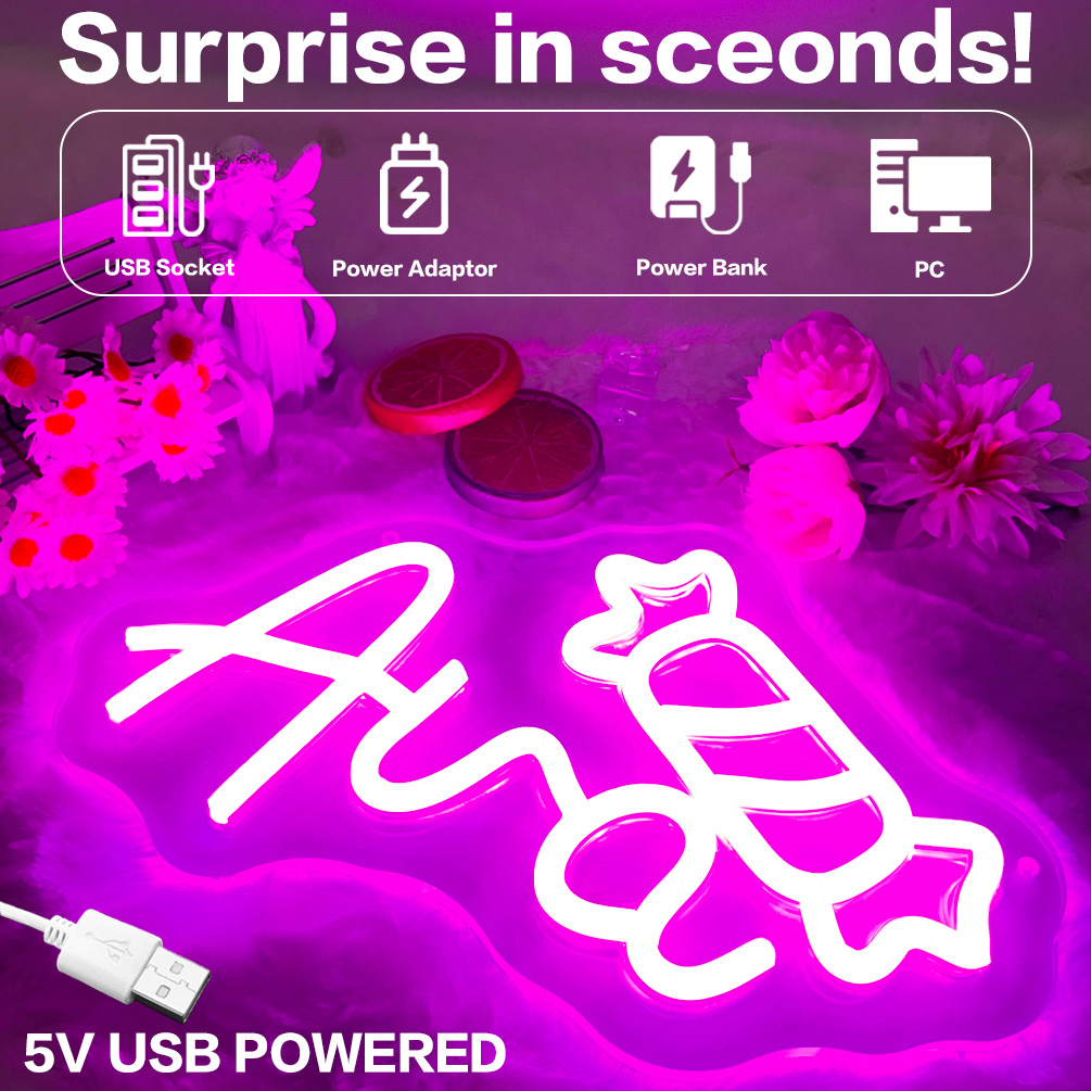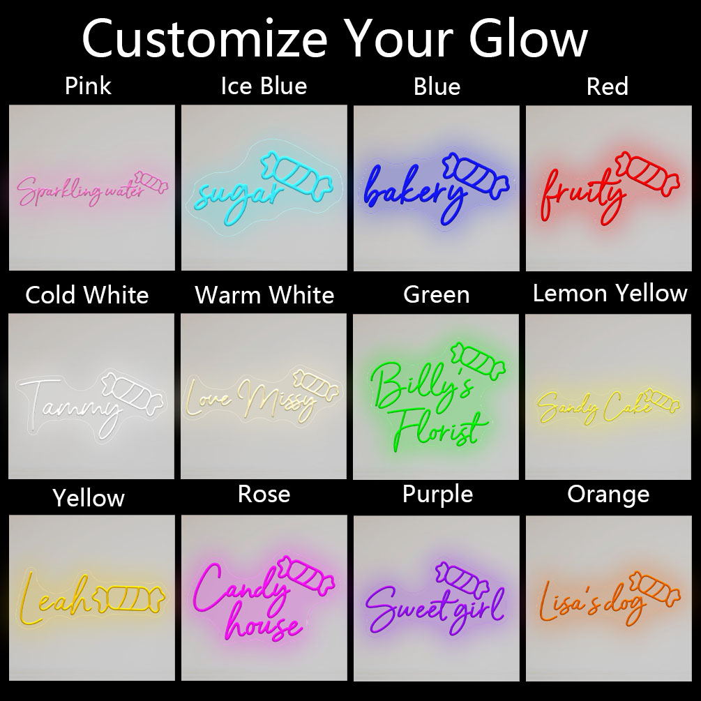 Custom Candy and Name Neon Lights, Personalised LED Neon Lights for Candy Shops, Halloween Parties, Weddings, Events, Children’s Rooms, Bedrooms, Living Rooms and Home Decorations, unique and ideal gifts for Birthdays, Weddings, Graduation Ceremonies, Children’s Day, Housewarming and more!