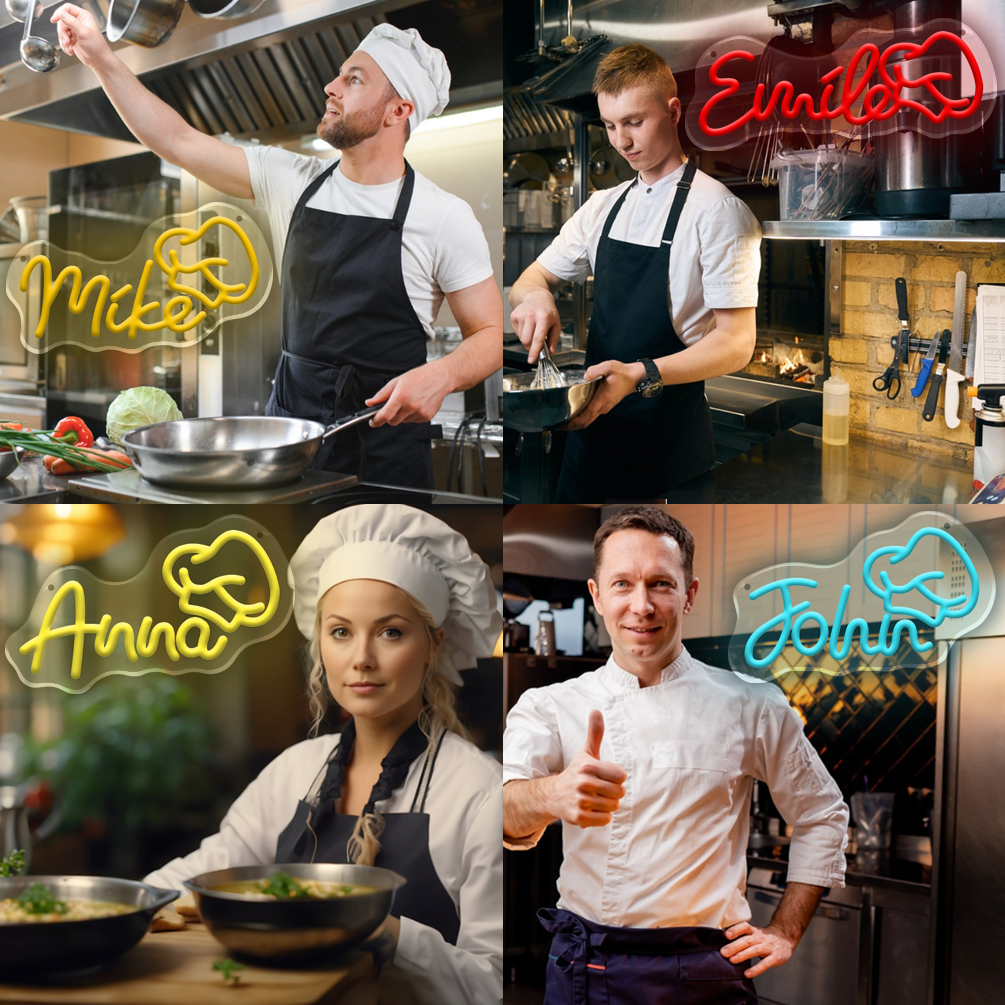 Custom Chef Hat Pattern and Name Neon, 3D Engraving, Personalized LED Neon Lights for Restaurant, Theme Party, Cafe, Bar, Fast Food, Birthday Gift and Home Kitchen Decoration, Unique Ideal Gift for Restaurant, Theme Party and Kitchen!