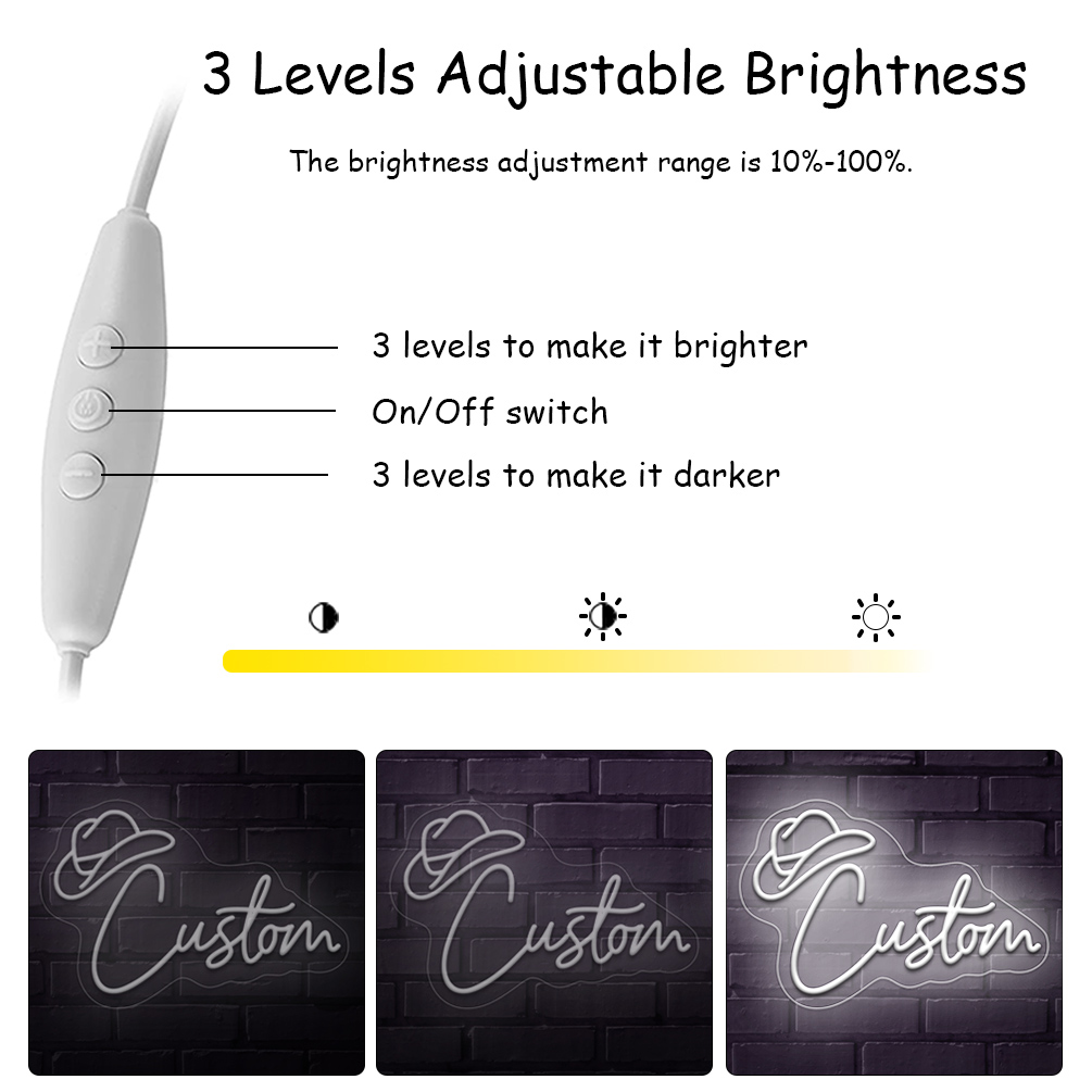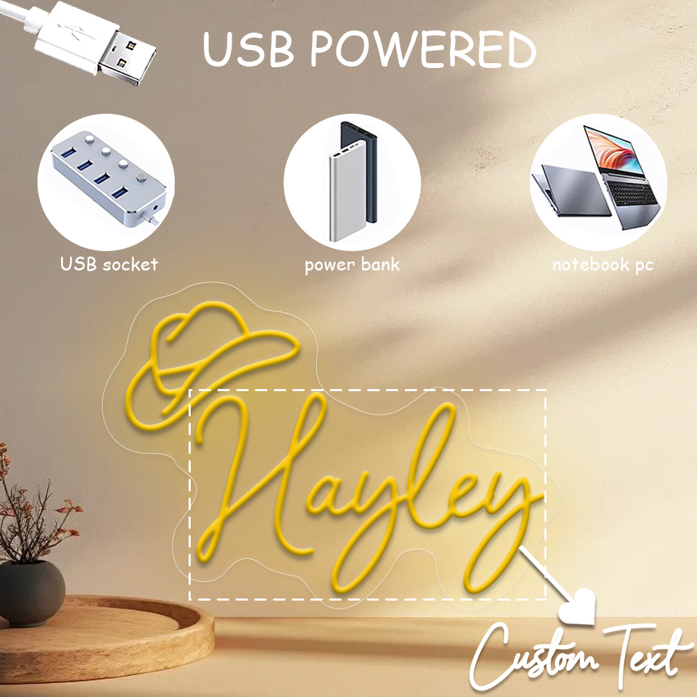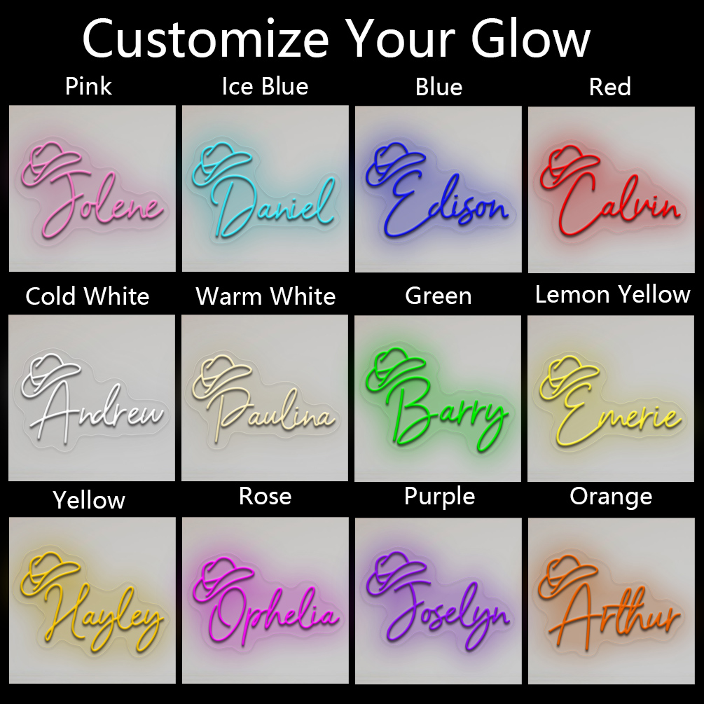 Custom Cowboy Hat and Name Neon, Personalised LED Neon Lights for events, children’s rooms, bedrooms, living rooms and home decor, unique and ideal gifts for birthdays, weddings, graduations, children’s day and more!