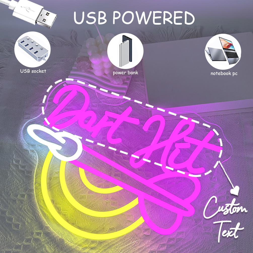Custom darts and name neon signs, personalised LED neon lighting for games rooms, man caves, bars, parties, bedrooms, living rooms and home décor. The perfect unique gift for birthdays, parties, housewarmings and more!