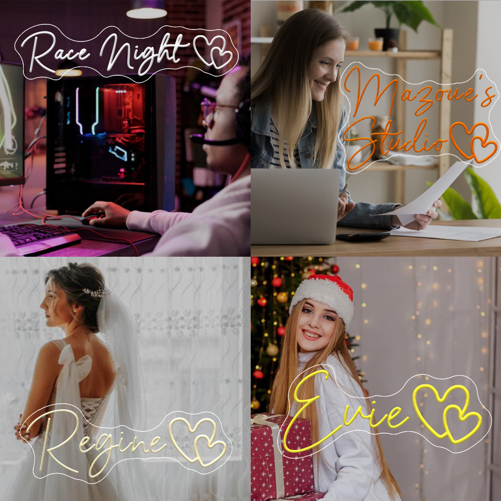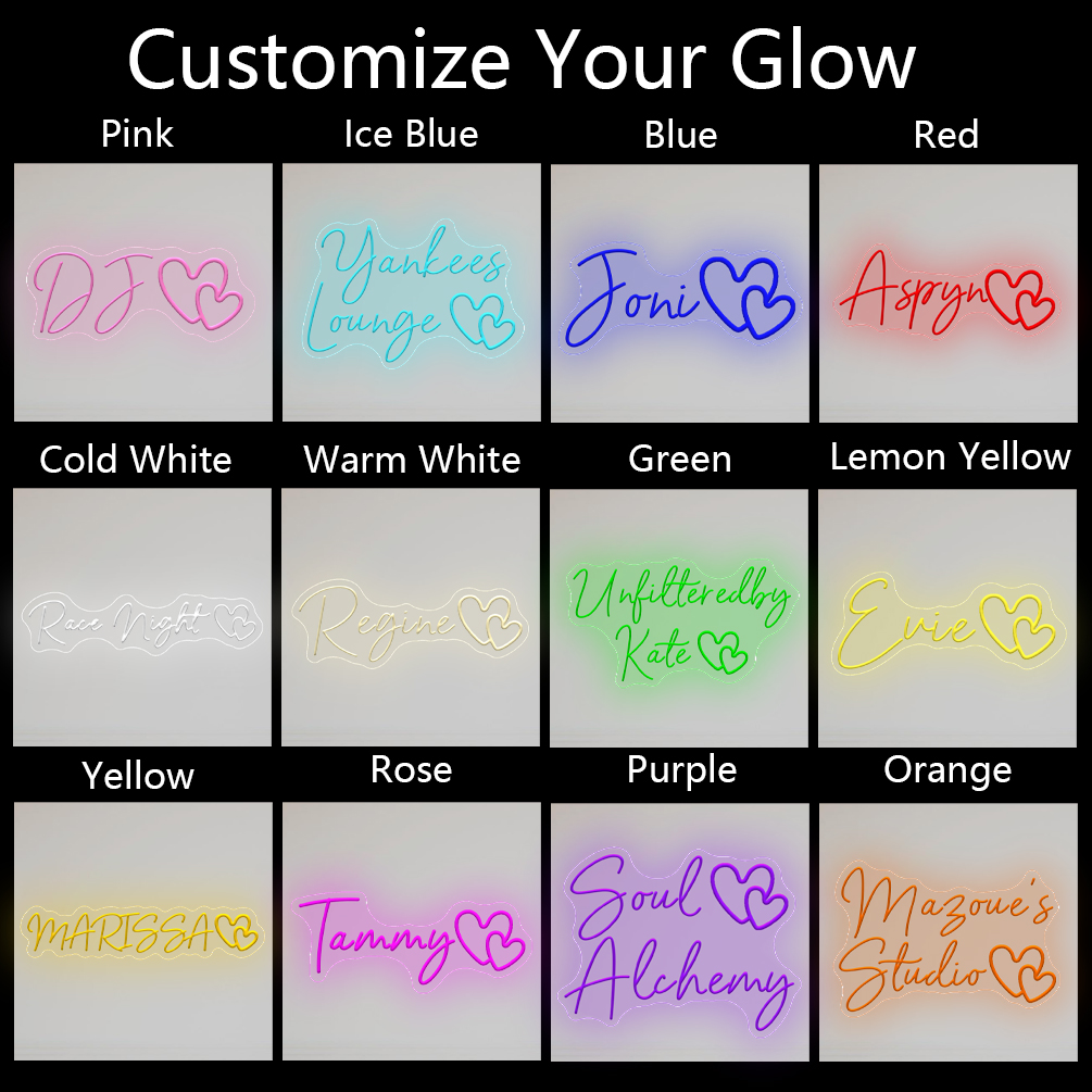 Custom Double Heart Shaped and Name Neon Lights, Personalised LED Neon Lights for Events, Restaurants, Bars, Bedrooms, Living Rooms and Home Decor, Unique and Ideal Gifts for Birthdays, Weddings, Graduation Ceremonies and more!
