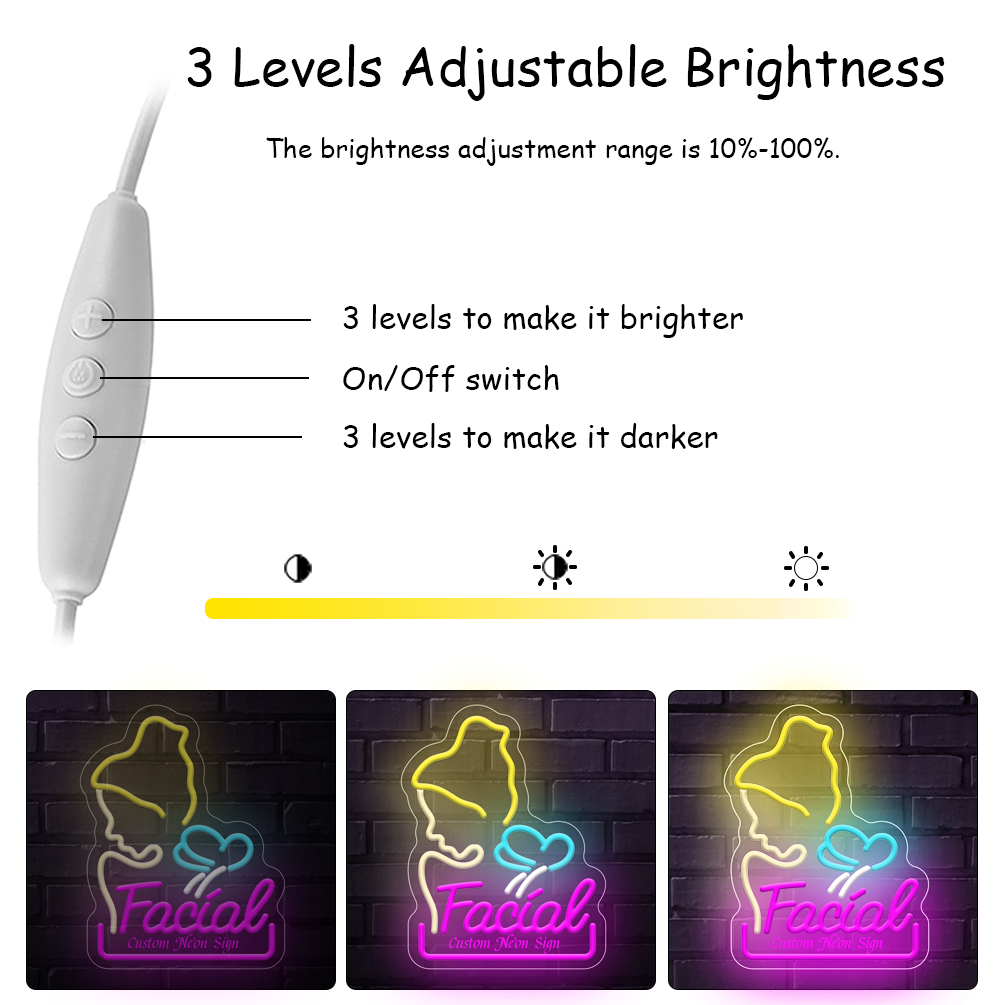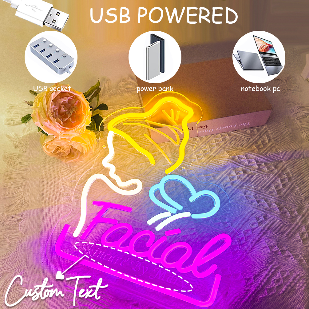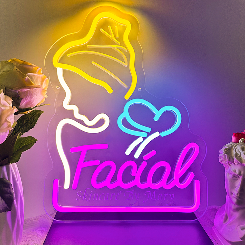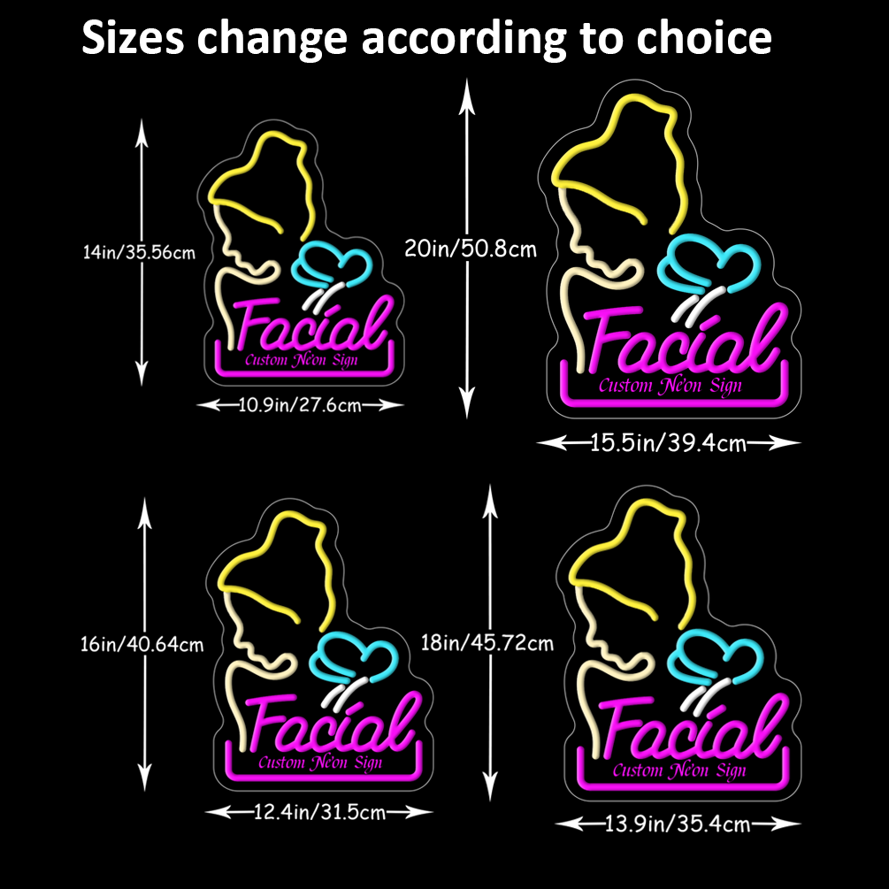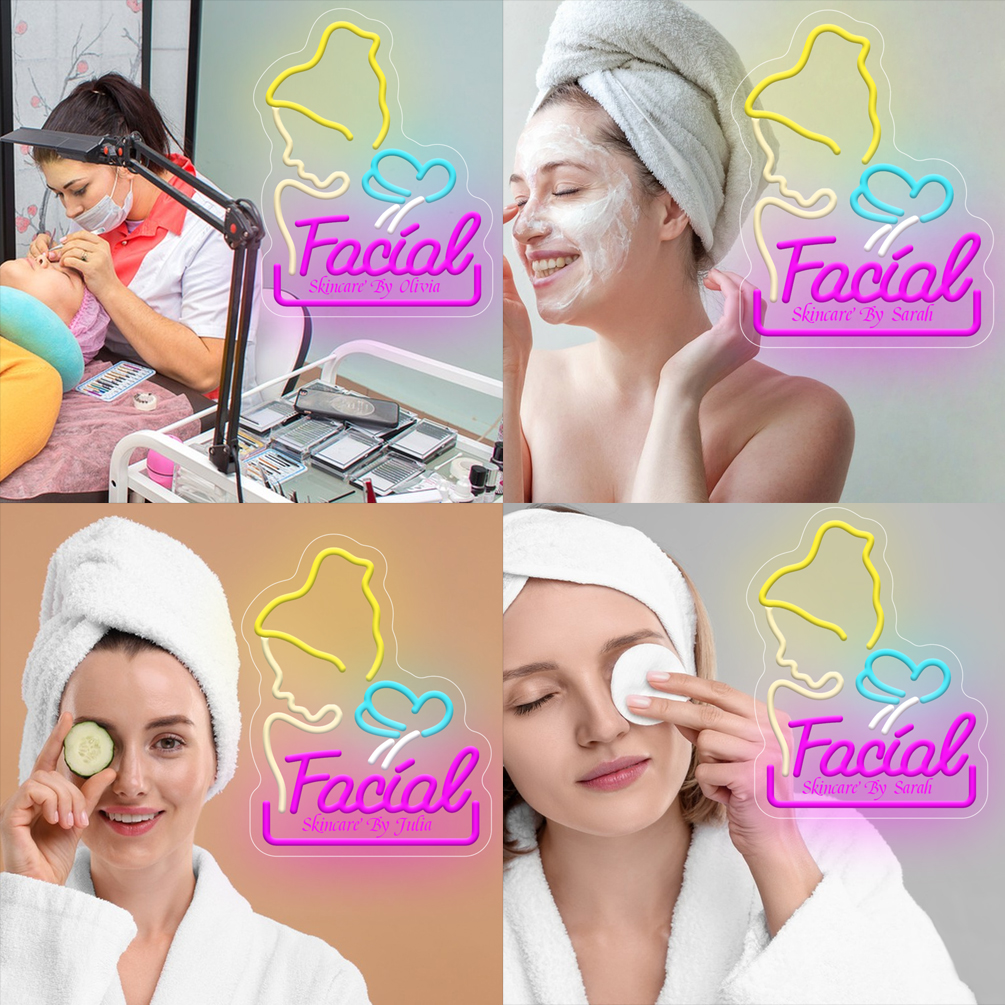 Custom Fashionable Facial Neon Sign, 3D Engraving, LED Neon Lights, Suitable for Beauty Salon, Spa, Powder Room, Events, Bedroom, Living Room and Home Decoration, Unique and Ideal Gift for Birthday, Beauty Salon, Powder Room, Party, Housewarming and more!