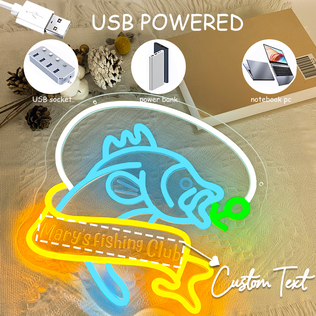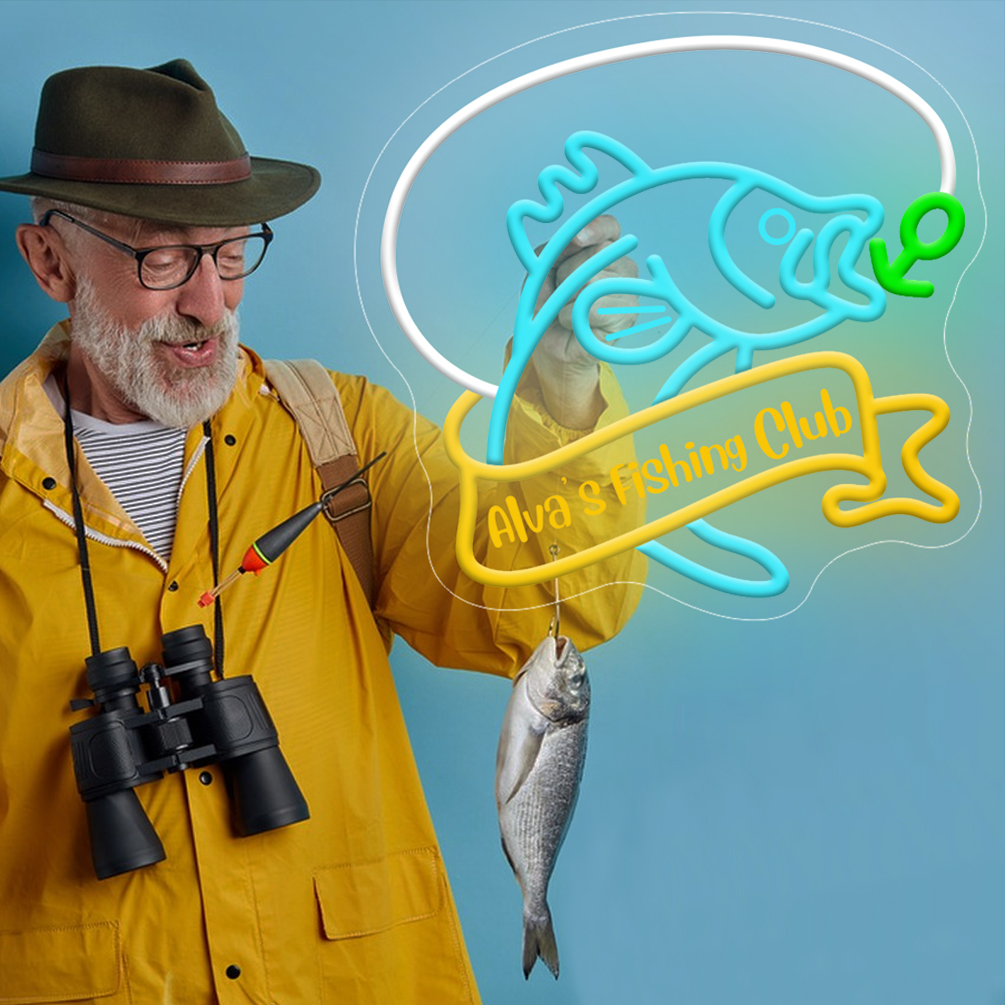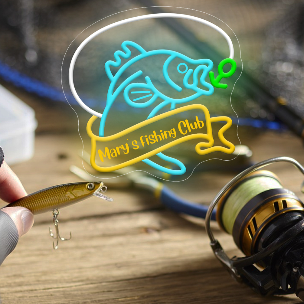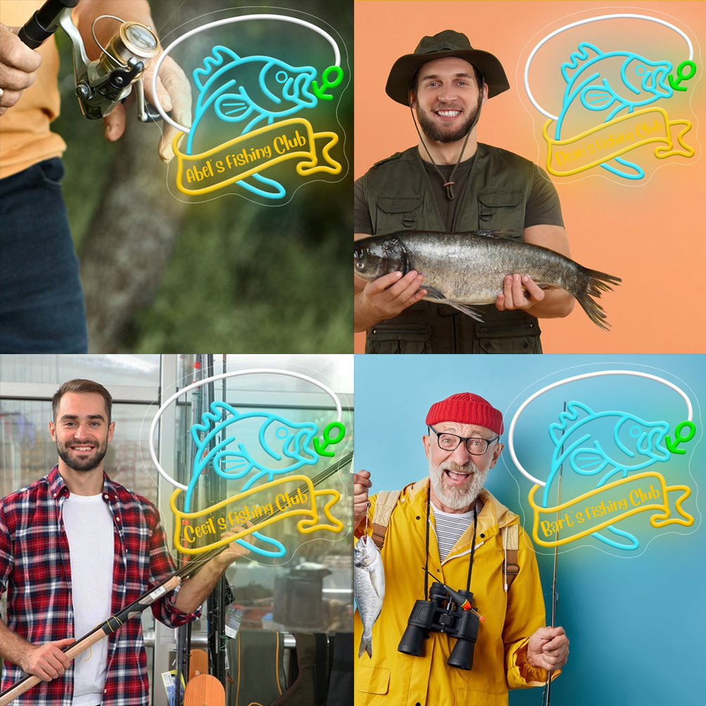 Custom Fishing and Name Neon Signs, Personalised LED Neon Signs for rod shops, fishing clubs, living rooms and home décor, a unique and ideal gift for birthdays, bedrooms, fishing outfitters, housewarmings and more!