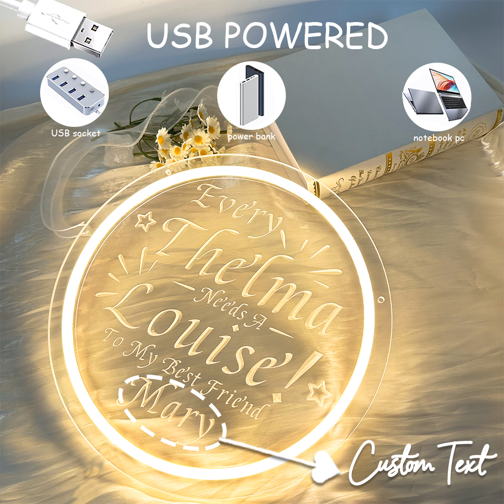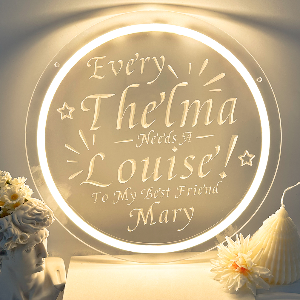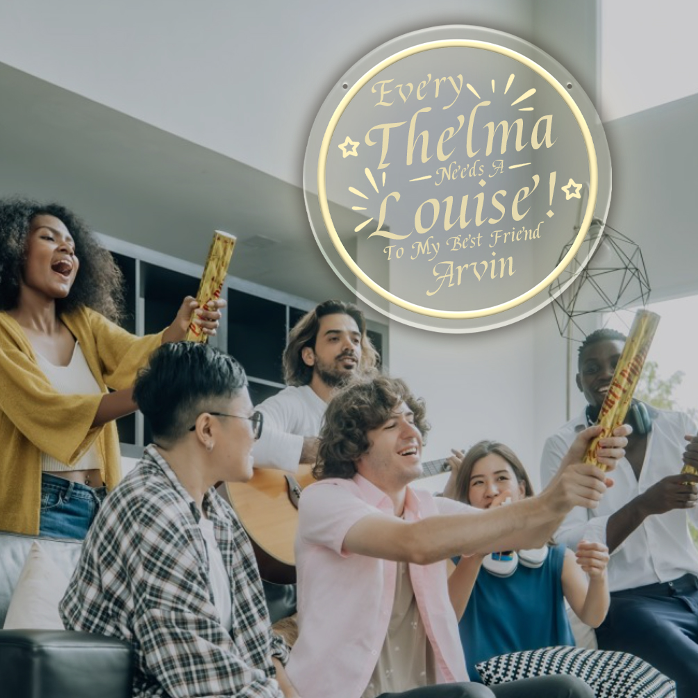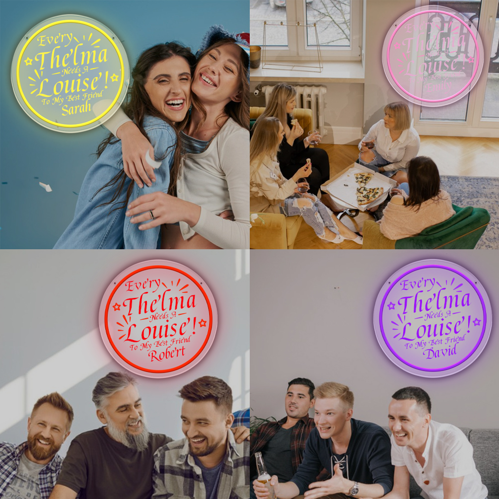 Custom Friendship and Name Neon Sign, 3D Engraving, Every Thelma needs a Louise neon sign for good friends, siblings, living room and home decor, birthday celebrations, ideal gift for parties, birthdays, housewarmings and other perfect matches!