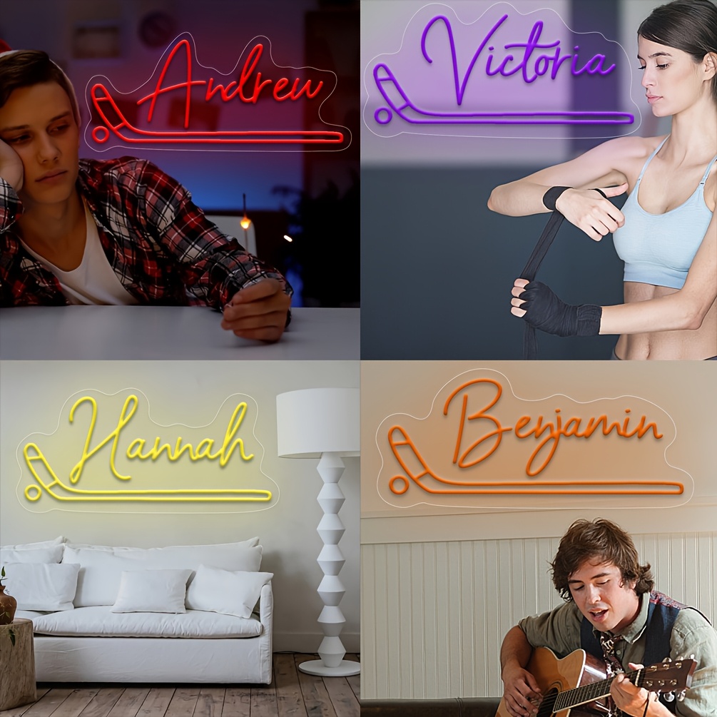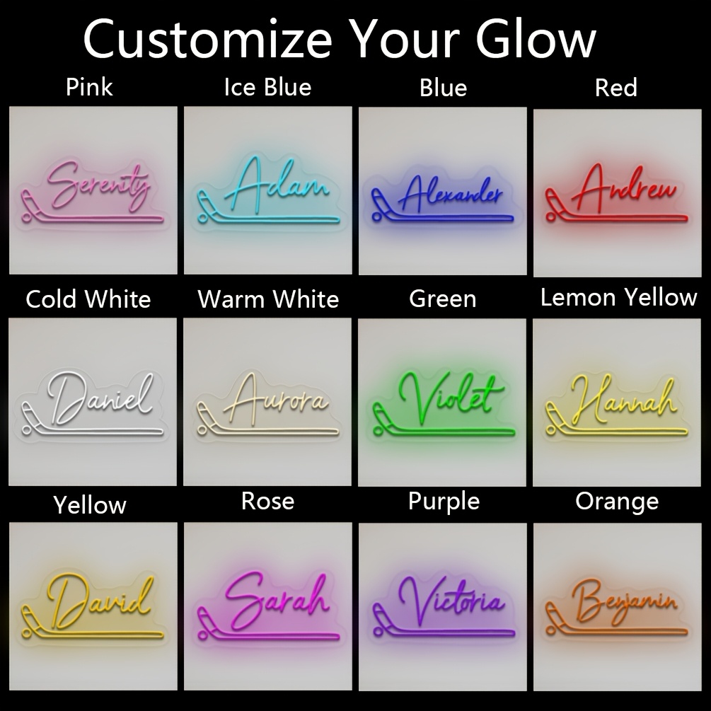 Custom Hockey Stick and Name Neon, Personalised LED Neon Lights for events, children’s rooms, bedrooms, living rooms and home decor, unique and ideal gifts for birthdays, weddings, graduations, children’s day and more!