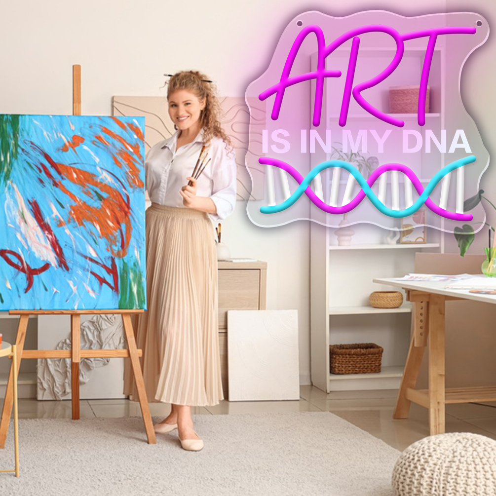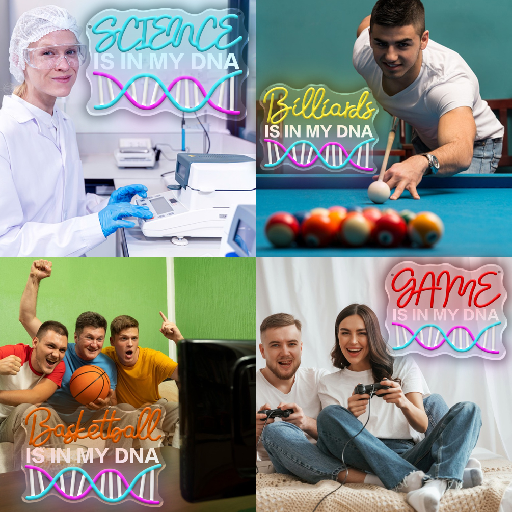 Custom IS IN MY DNA and name neon lights, 3D engraving, personalised LED neon lights for art galleries, shops, parties, clubs, bars, bedrooms, living rooms and home decor, ideal for unique gifts for art galleries, parties, clubs, housewarmings and more!