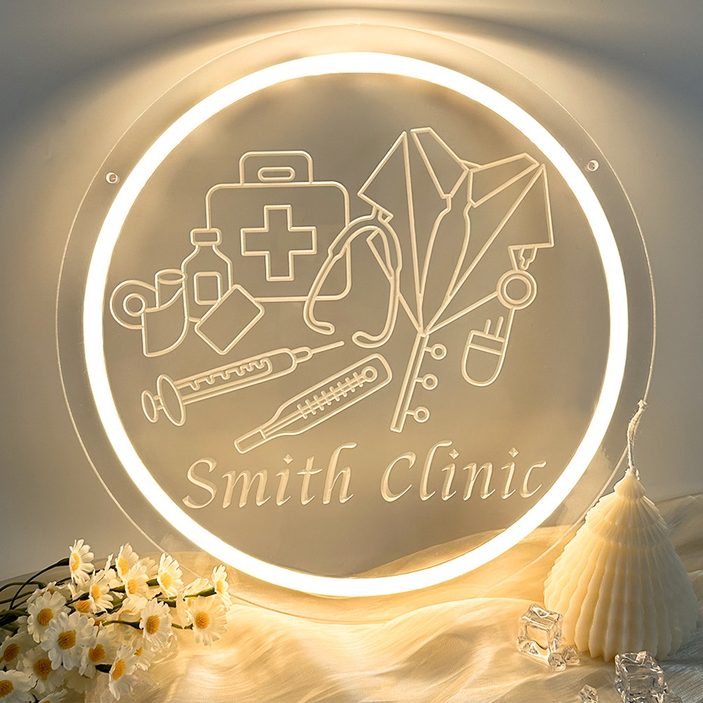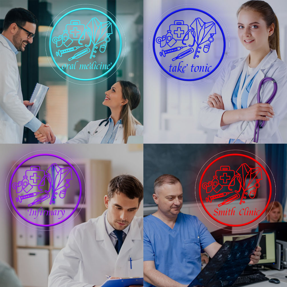 Custom medicine and name neon sign with 3D engraving, LED neon light with stethoscope and bottle for clinic, hospital, pharmacy decorations, unique and ideal gift for theme parties, clinics, hospitals, pharmacies, housewarming and more!