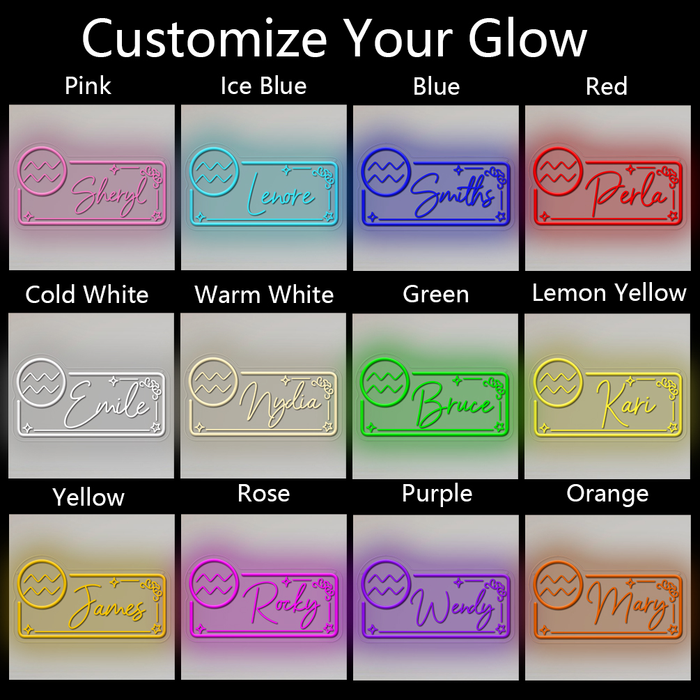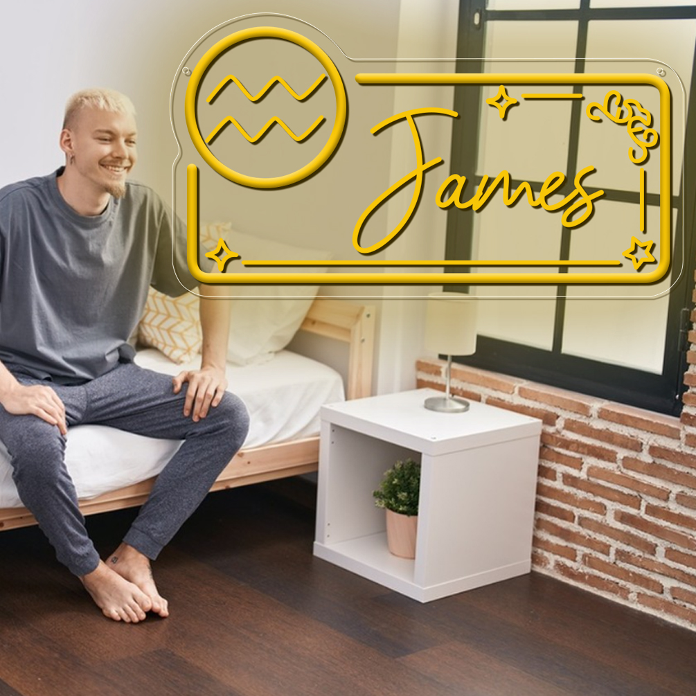 Custom neon sign with Aquarius zodiac sign pattern and name , 3D engraving, personalised LED neon light, suitable for weddings, children’s rooms, bedrooms, living room decorations, unique and ideal gift for birthdays, weddings, graduation ceremonies, children’s day, housewarming and more!