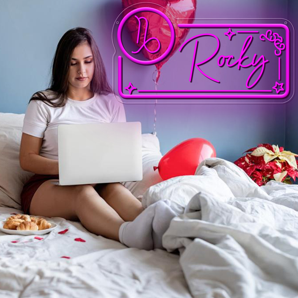 Custom neon sign with Capricorn zodiac sign pattern and name , 3D engraving, personalised LED neon light, suitable for wedding, children’s room, bedroom, living room decorations, unique and ideal gift for birthdays, weddings, graduations, children’s day, housewarming and more!