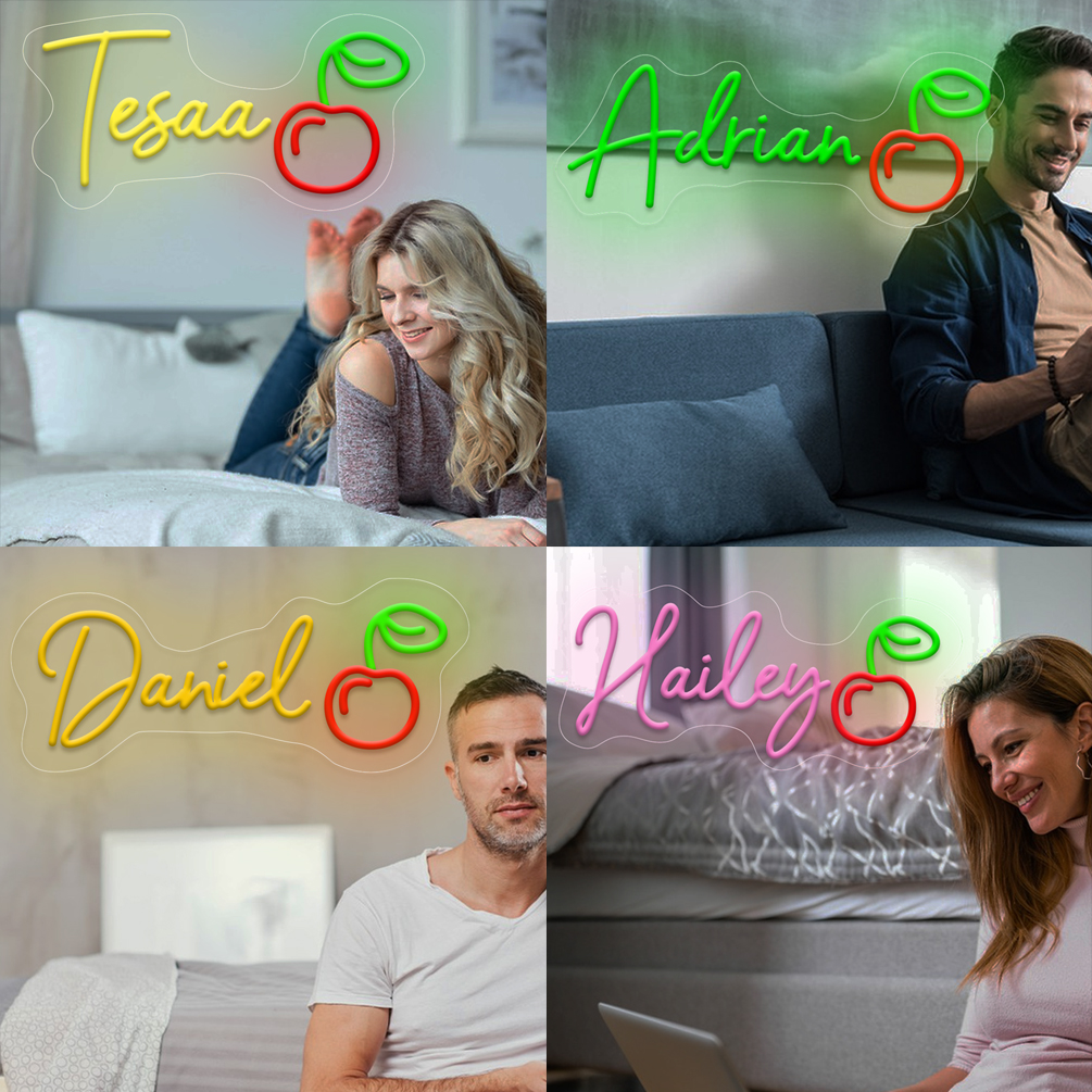 Custom Neon Sign with Cherry Pattern, LED Neon for Fruit Shop, Parties, Events, Bedrooms, Living Rooms and Home Decor, Unique and Ideal Gift for Birthdays, Parties, Ceremonies, Bedrooms, Housewarmings and more!
