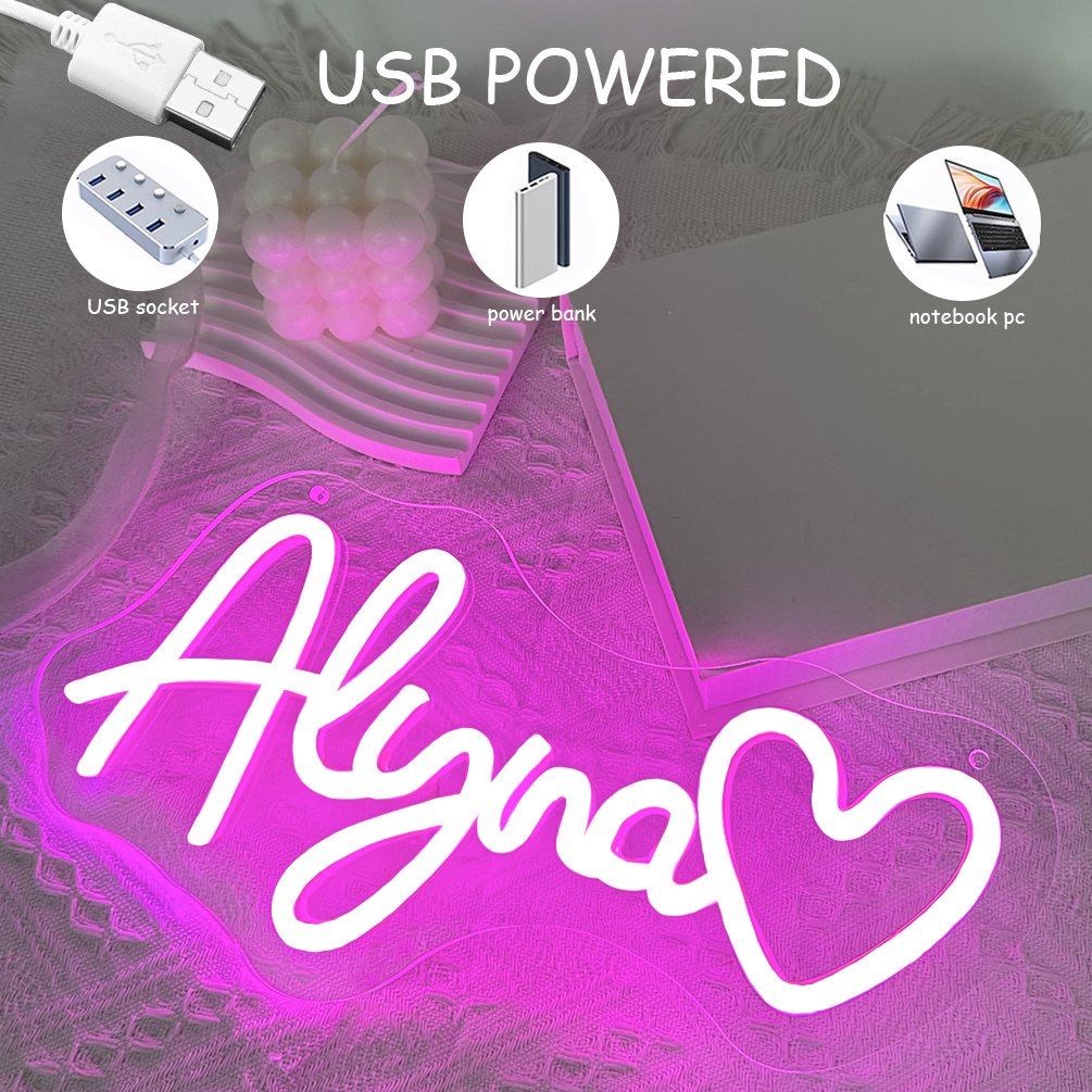 Custom Neon Sign with Positive Heart and Name, Personalised LED Neon for weddings, events, children’s rooms, bedrooms, living rooms and home decor, unique and ideal gift for birthdays, weddings, graduations, Father’s Day, Children’s Day and more!