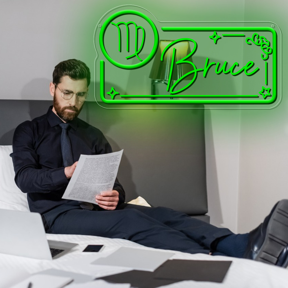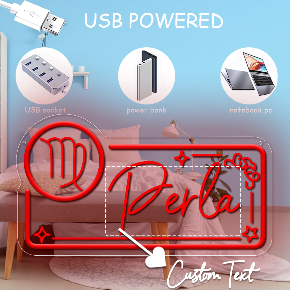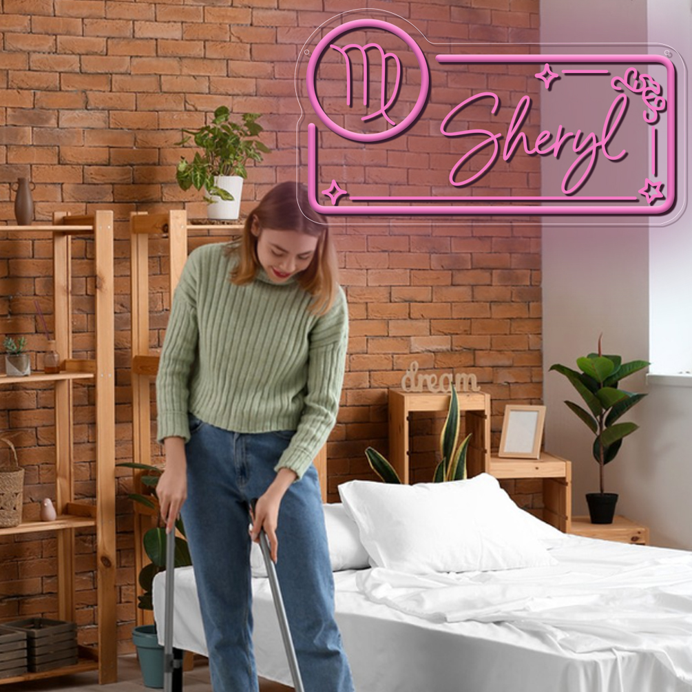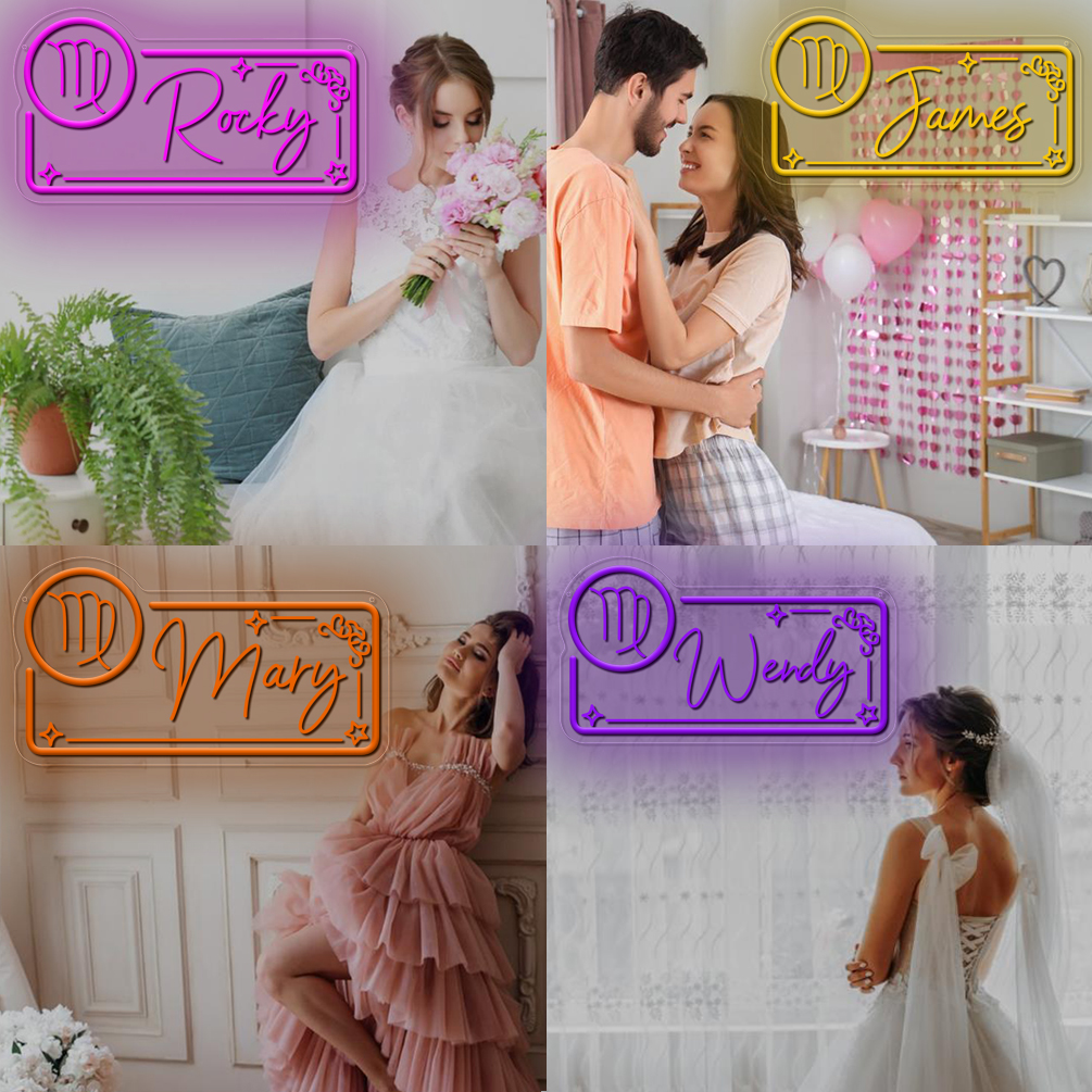 Custom neon sign with Virgo zodiac sign pattern and name , 3D engraving, personalised LED neon light, suitable for wedding, children’s room, bedroom, living room decorations, unique and ideal gift for birthdays, weddings, graduations, children’s day, housewarming and more!