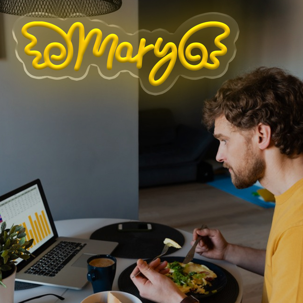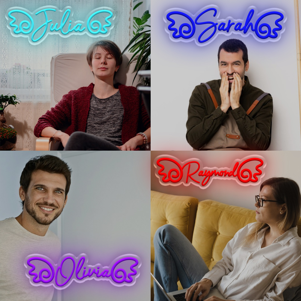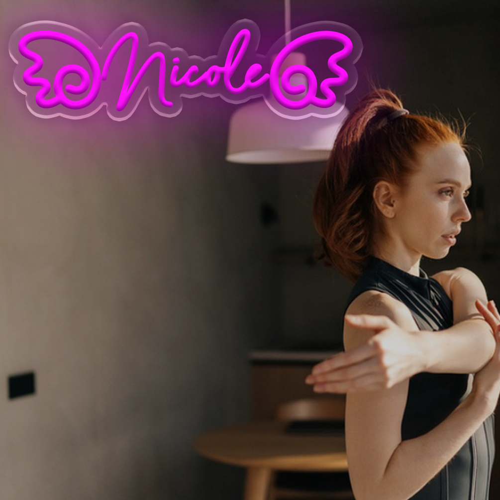 Custom neon signs featuring angel wings and personalised names. Ideal for graduation season, weddings, parties, offices, living rooms and home décor. The perfect unique gift for graduations, weddings, parties, clubs, housewarmings and more!
