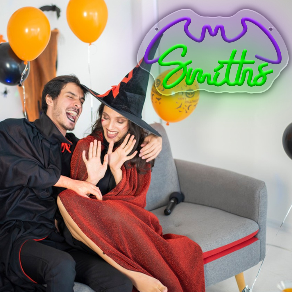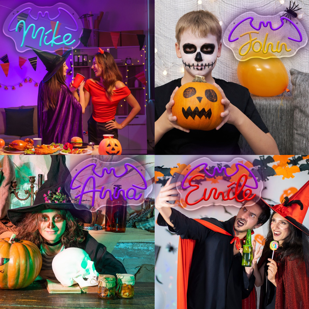 Custom Neon Wall Decorations with Bat Patterns and Names, Dimmable LED Halloween Ambiance Wall Decor Neon Sign, perfect for Halloween parties, bedrooms, birthday parties, bars, shops, game rooms, clubs, rooms, friends party wall decorations, as a first choice of birthday and Halloween gifts for friends and family!