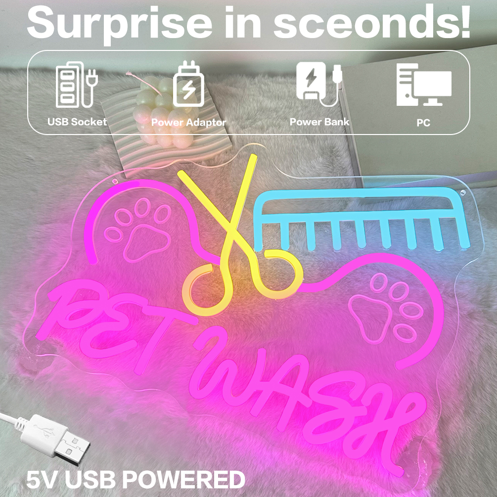 Custom Pet Grooming and Name Neon Lights, 3D Engraving, Personalised LED Neon Lights for Pet Shops, Stores, Parties, Bedrooms, Living Rooms and Home Decor, Ideal for Pet Shops, Parties, Clubs, Housewarming and other unique gifts!