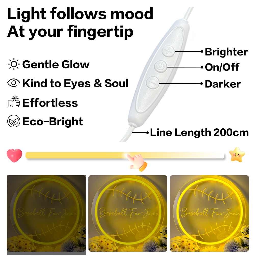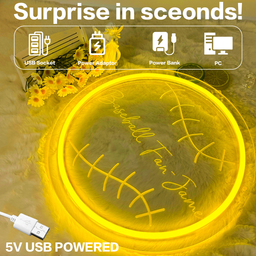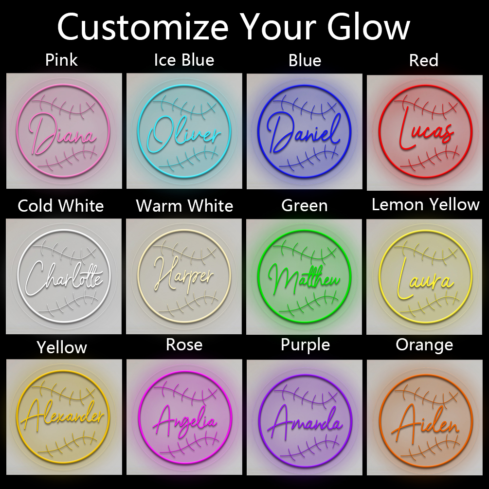 Custom Round Baseball and Name Neon Lights, Personalised 3D Engraving, LED Neon Lights for Baseball Parties, Events, Children’s Rooms, Bedrooms, Living Rooms, and Home Decor, Unique and Ideal Gifts for Parties, Graduations, Children’s Day, Housewarming and more!