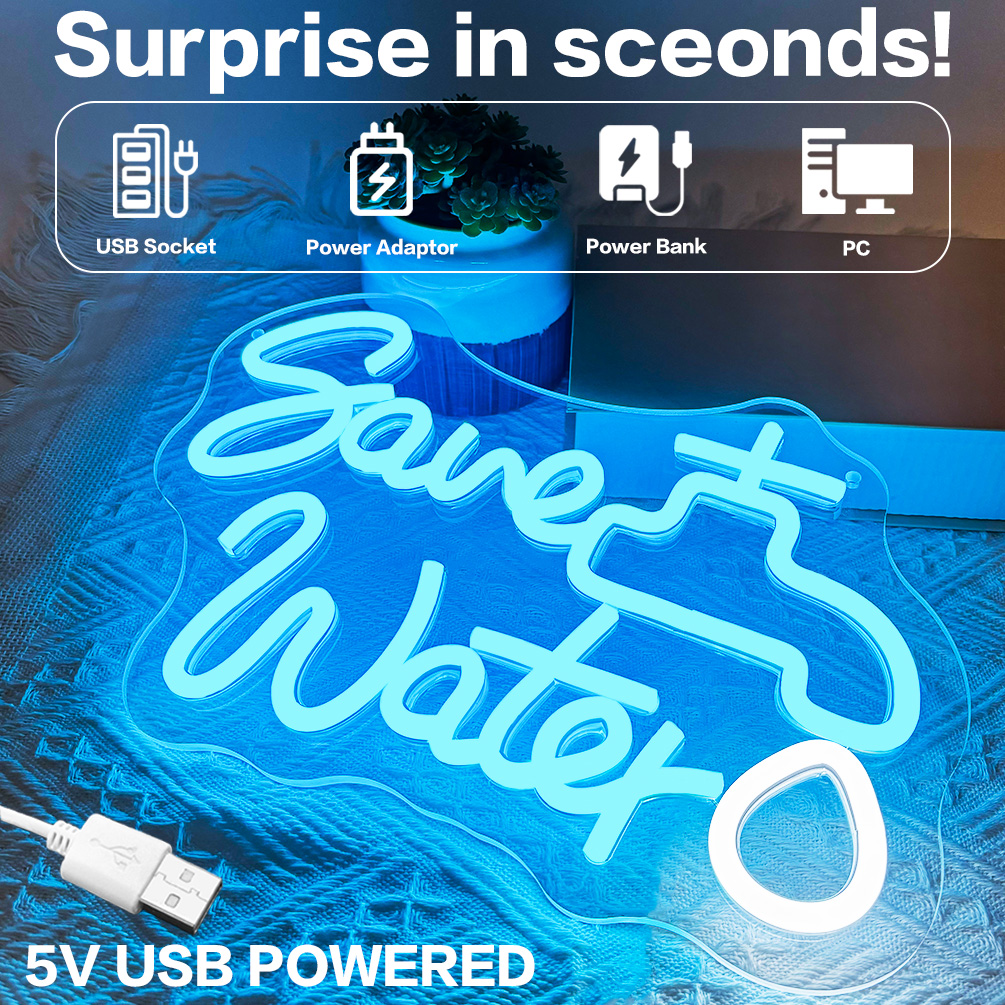 Custom water saving signs and names neon lights, personalised LED neon lights for theme parties, shopping malls, washrooms, schools, public places, living rooms and home decorations, ideal unique gifts for washrooms, birthday gifts, housewarming and more.