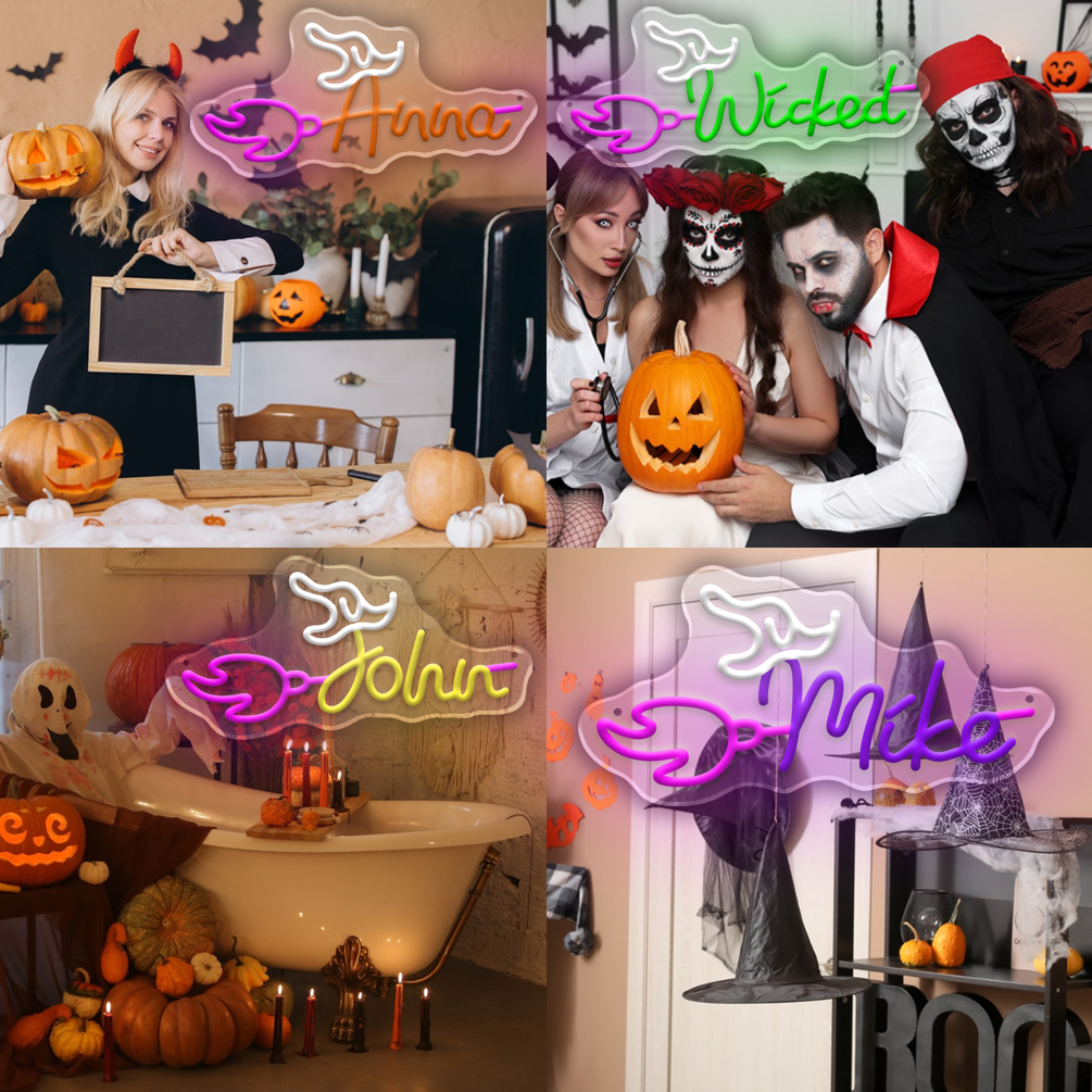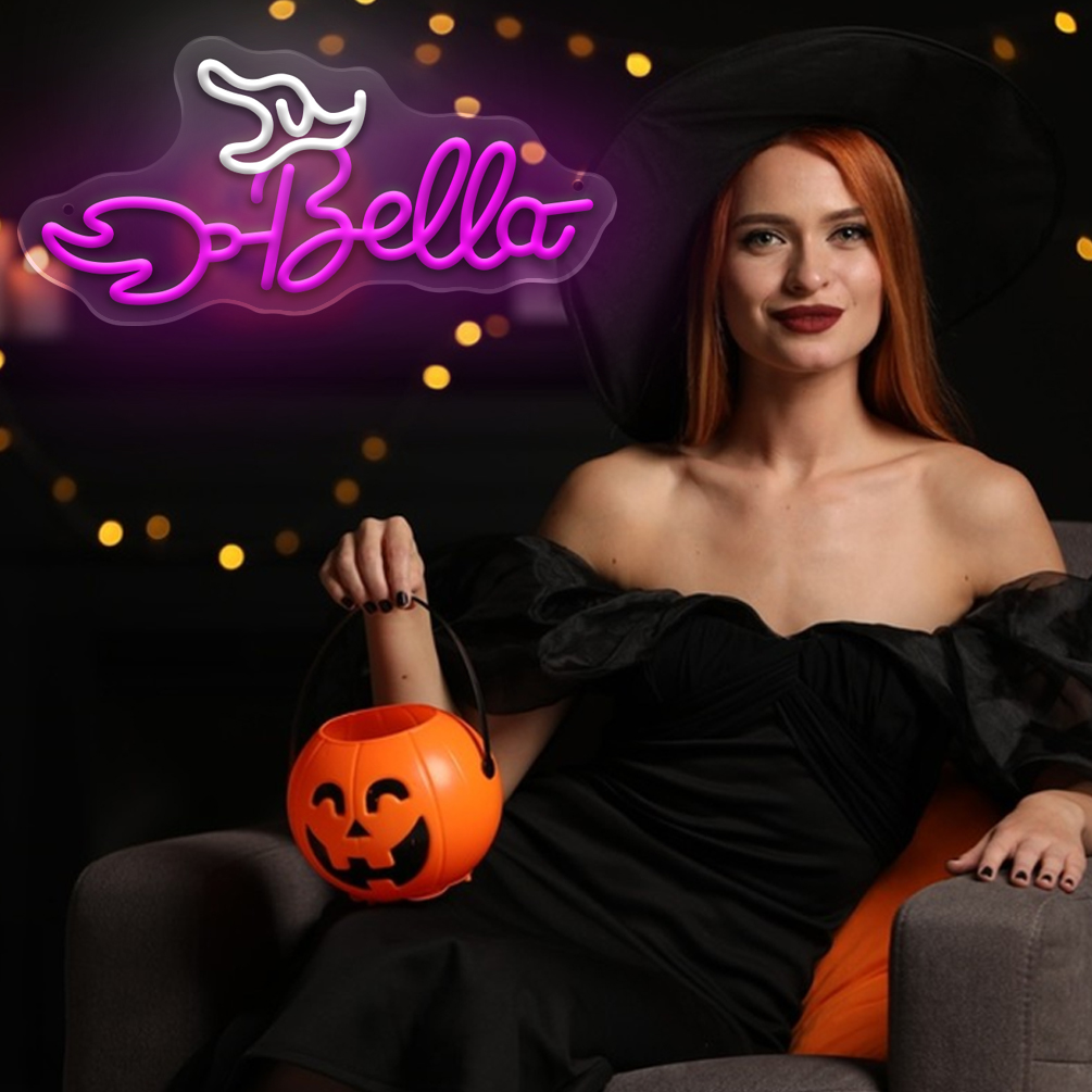 Custom witch hat, magic broom and name neon lights, personalised LED neon lights for themed parties, Halloween, bedrooms, pubs, clubs, living rooms and home decorations, ideal unique gifts for parties, birthday gifts, housewarming and more.
